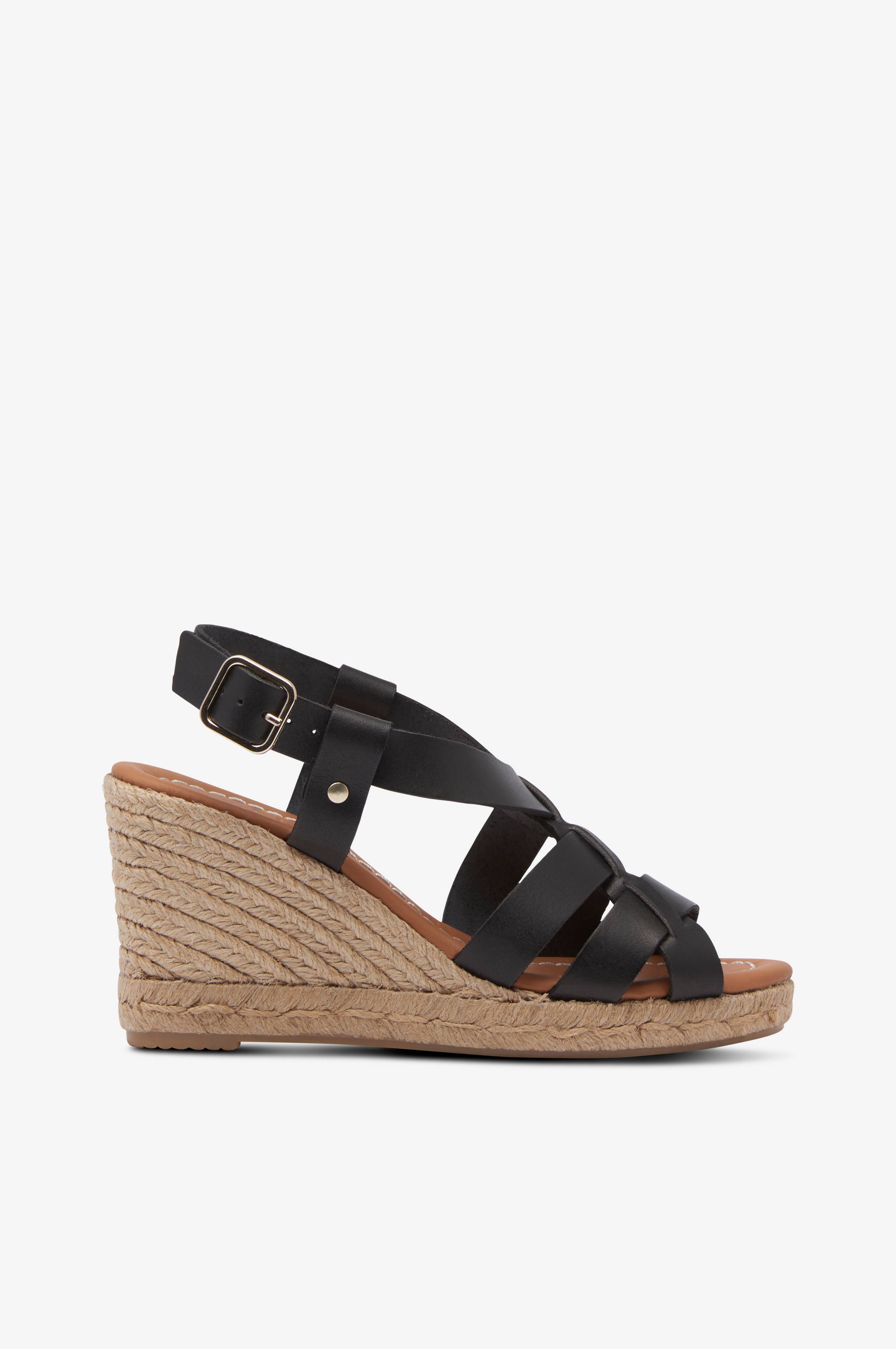 • Sandaler med hæl med rebbeklædt wedgehæl• Remme i læder• Justérbar ankelkæde med metallukning• Blød polstret fodseng i læder• Ydersål i gummi• Hælhøjde: 8 cm