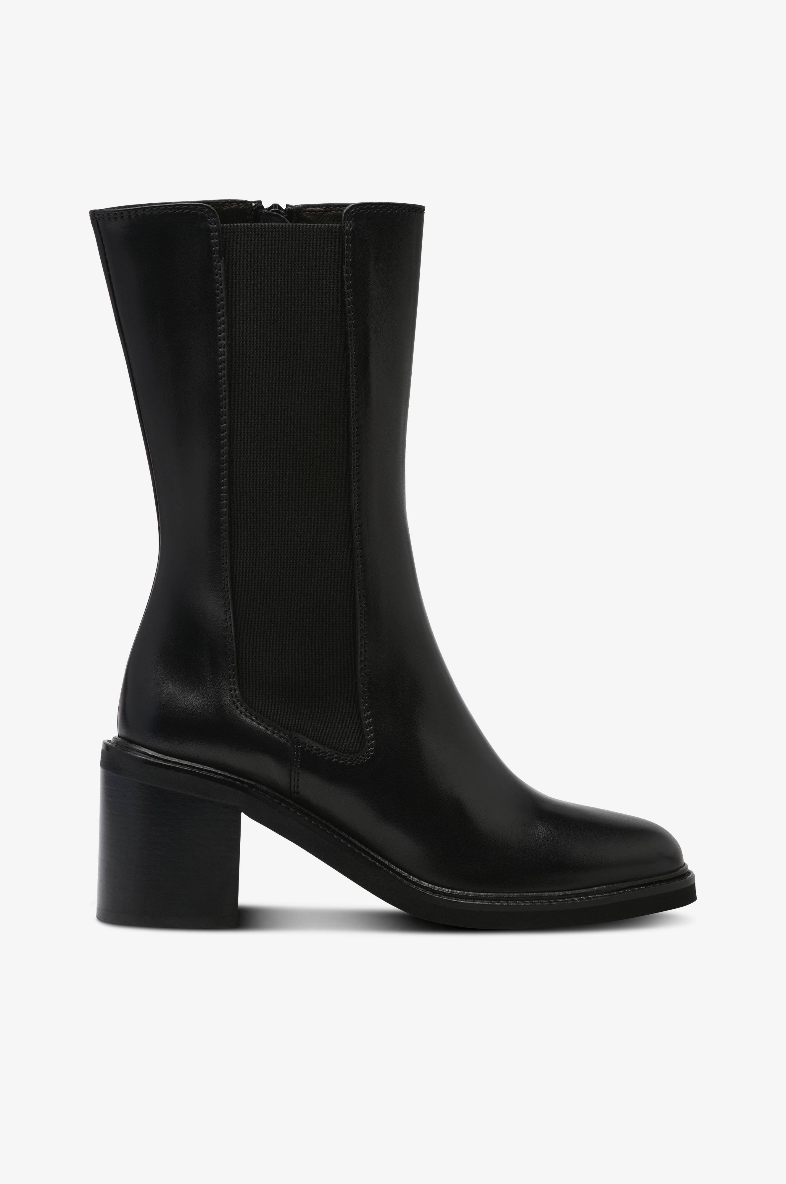 • Støvler i læder• Elastisk panel på ydersiden af skaftet• Lynlås på indersiden af skaftet• For i læder• Hælhøjde: 6 cm• Skafthøjde: 22 cm i str. 37