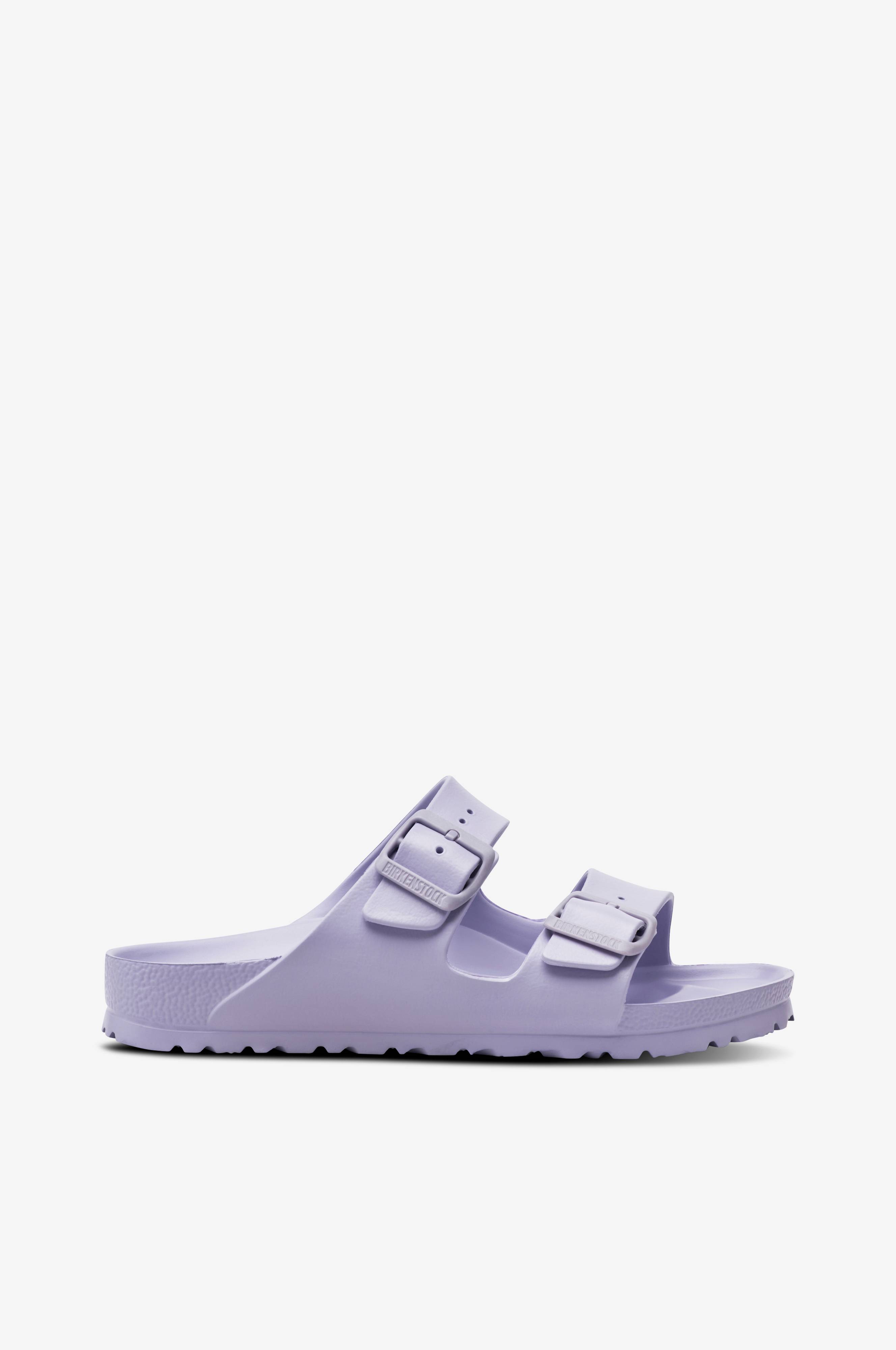 Birkenstock-sandal i vandafvisende EVA-materiale. Behagelig, fodformet og stabil model med meget lav vægt og dæmpende funktion i sålen. To remme over vristen reguleres med Plastspænde. Smal læst.