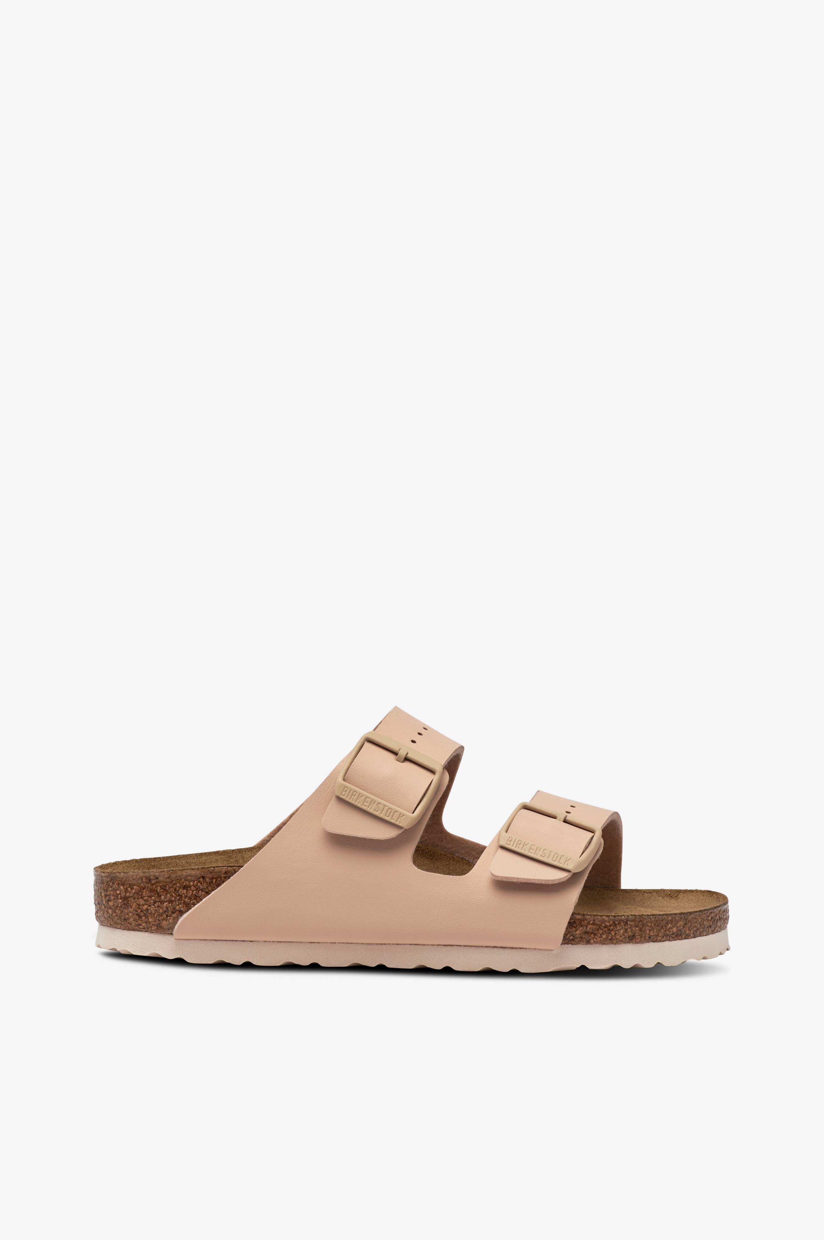 Sandalen Arizona fra Birkenstock er en klassisk og uovertruffen favorit gennem årtier, her i en moderne lakeret udgave. Arizona er en behagelig, fodvenlig og stabil sandal med en anatomisk korkfodseng. Overdel i slidstærkt syntetisk læder, kendt som Birkoflor. Foret i bomuldsfilt har god åndbarhed. Den fodformede indersål er beklædt med velourlæder. Mellemsålen er stødabsorberende og lavet af let naturkork, der er behandlet for at modstå snavs og fugt. EVA-sålen giver stødabsorbering og er let. Smal læst.