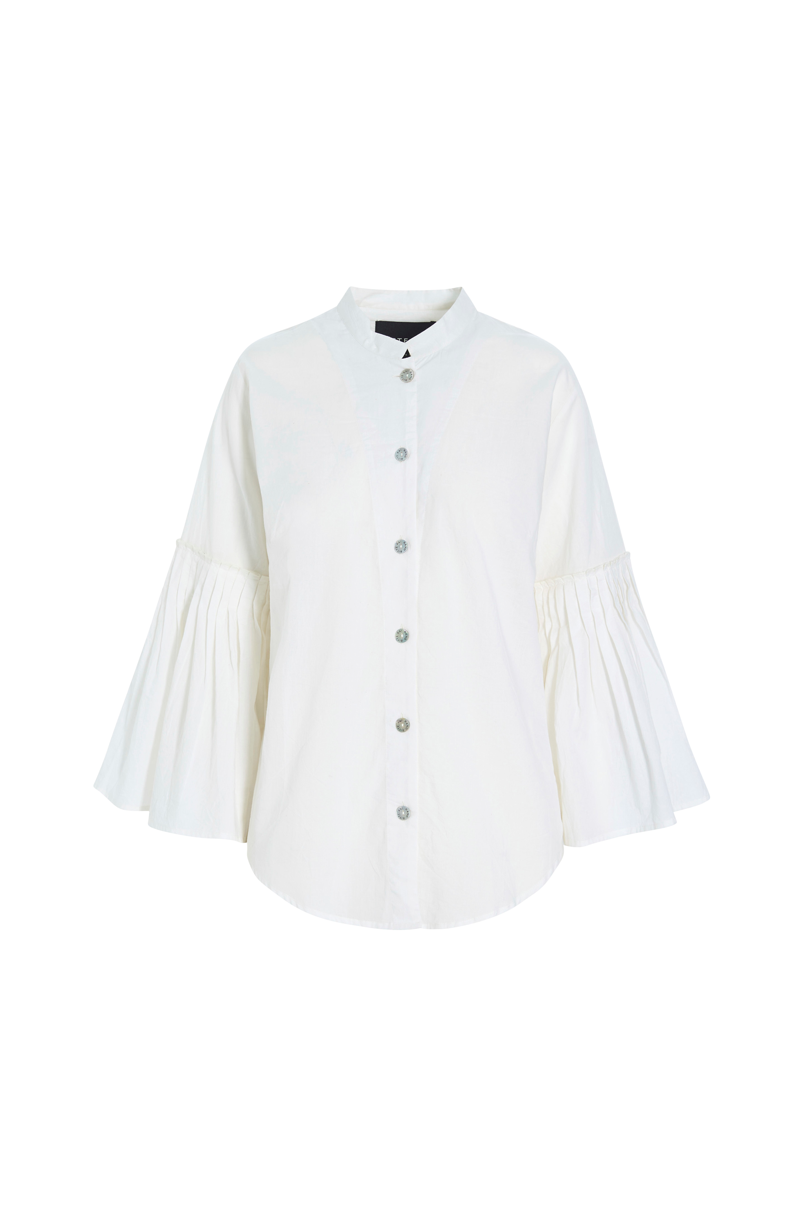 • Lige model med lille opretstående krave• Knapper foran• Langt ærme med brede ærmeafslutninger• Afrundet søm