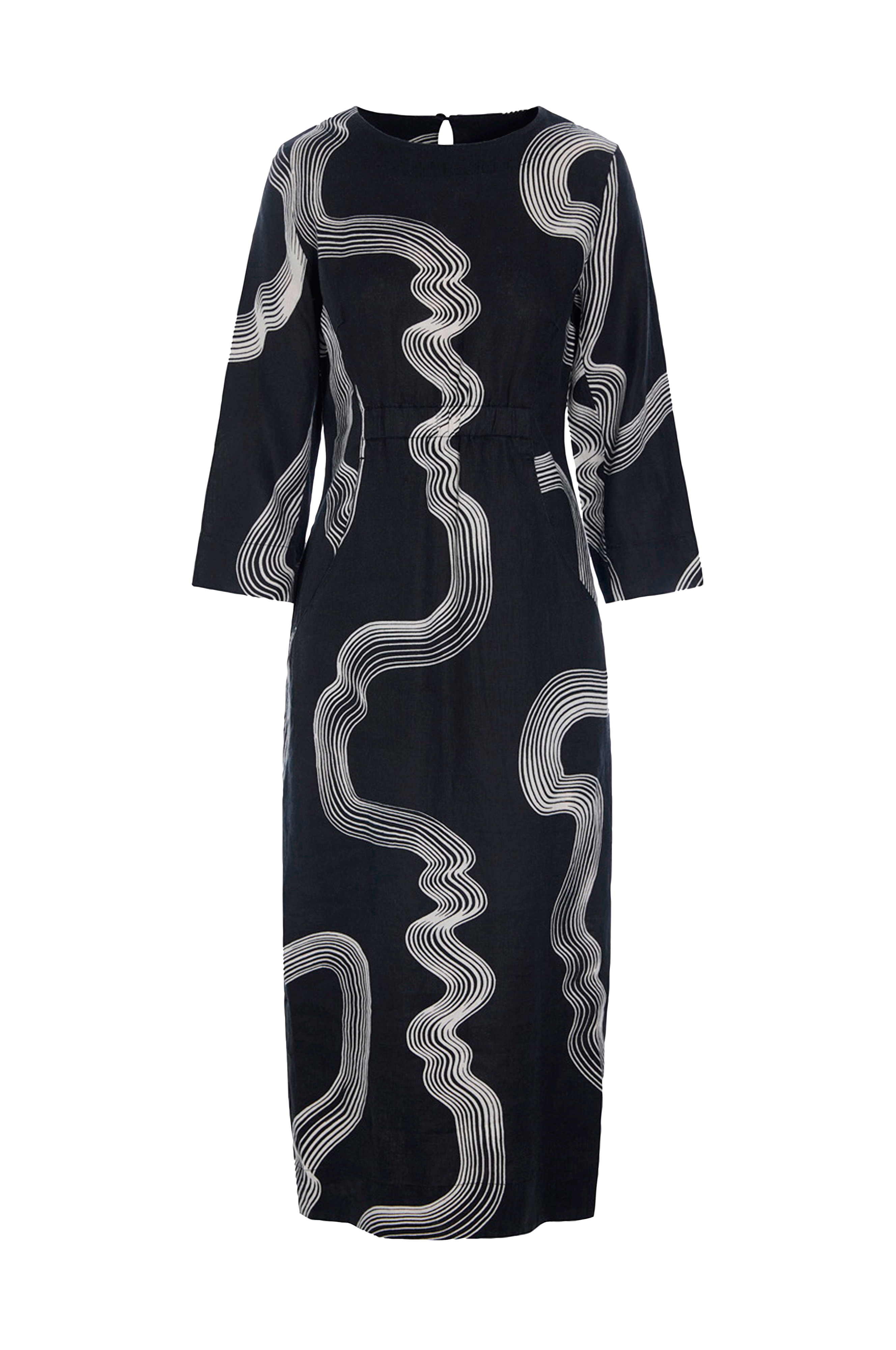 • Kraftig Linnedkvalitet• Defineret talje med elastik• 3/4 lange ærmer• Lommer foran• Slids bagpå• Længde: 128 cm i størrelse S