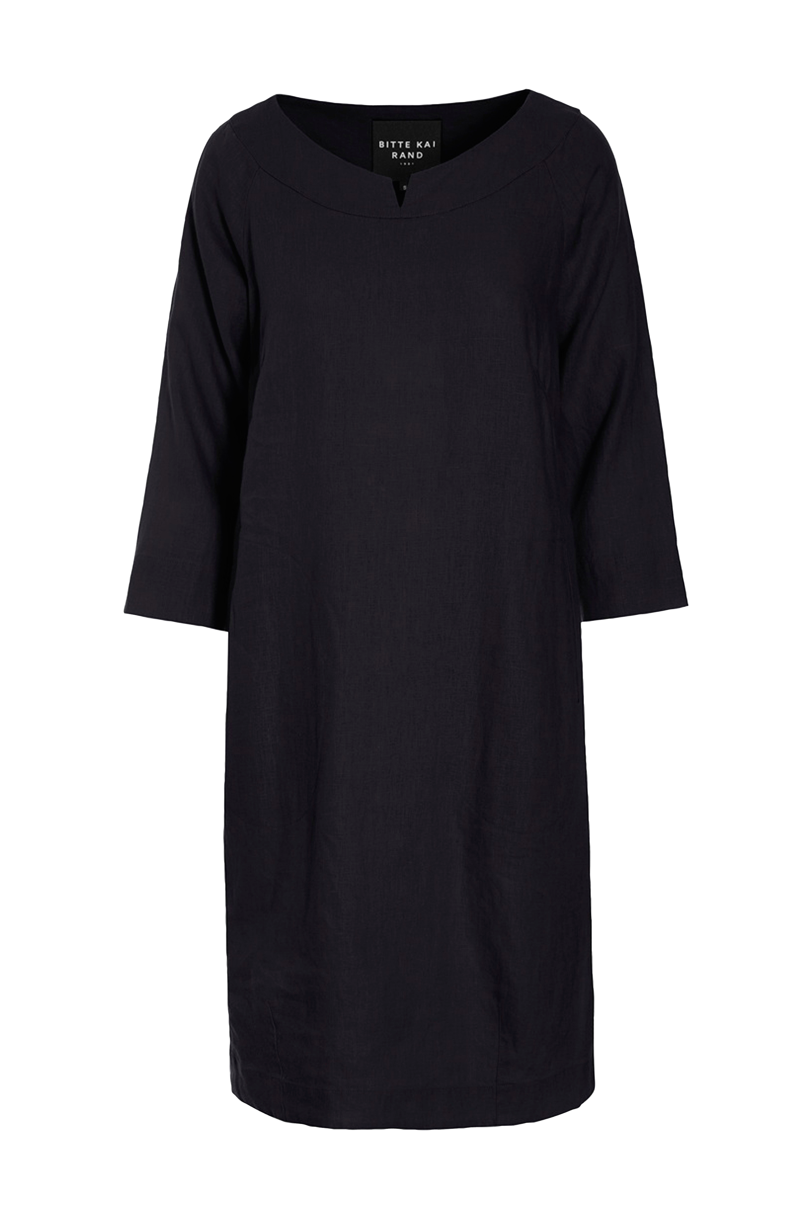 • Kjole i hør• Rund hals med slids• 3/4 lange ærmer med slids ved ærmeafslutningerne• Lommer foran• Længde: 97 cm i størrelse S