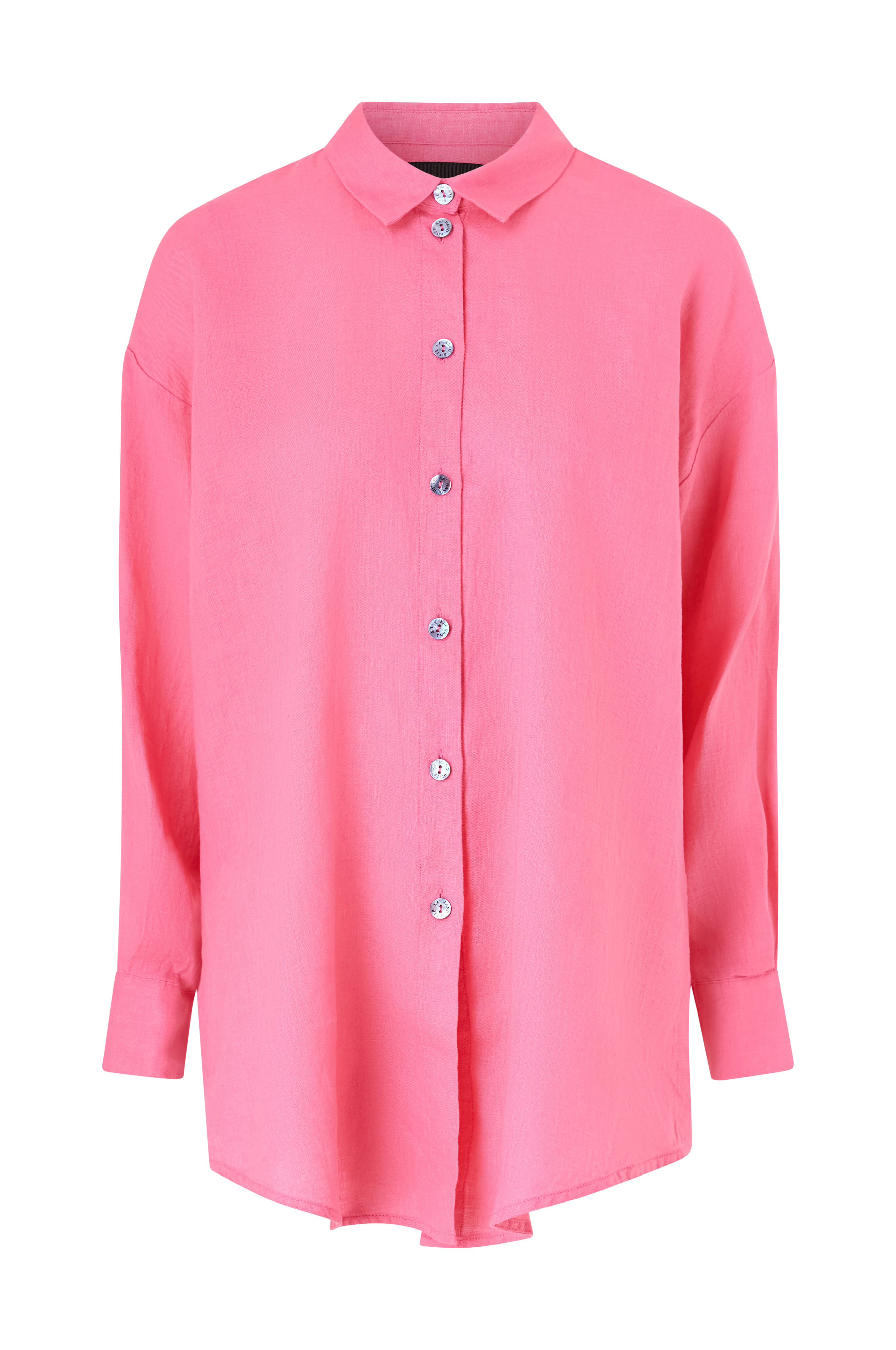 • Bred, lige model• Lille krave• Knapper foran• Nedsænket skulder• Langt ærme med manchet• Slids nede i siderne• Afrundet søm
