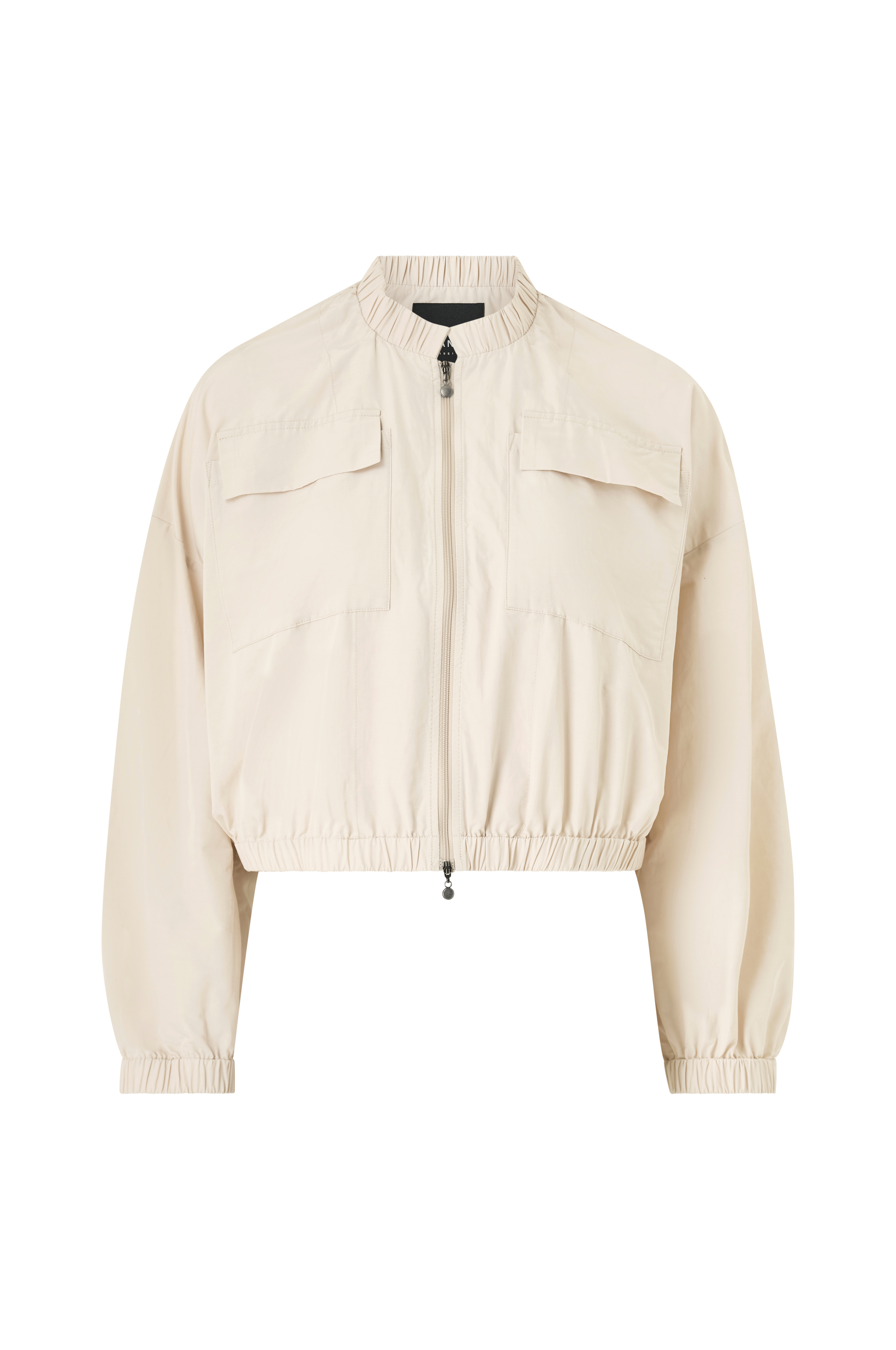 • Kort jakke• Opretstående krave• Elastik rundt om halsudskæringen, ved ærmeafslutningerne og ved nederste kant• Lynlåslukning• Brystlommer med låg• Normal pasform• Længde: 50 cm i størrelse S