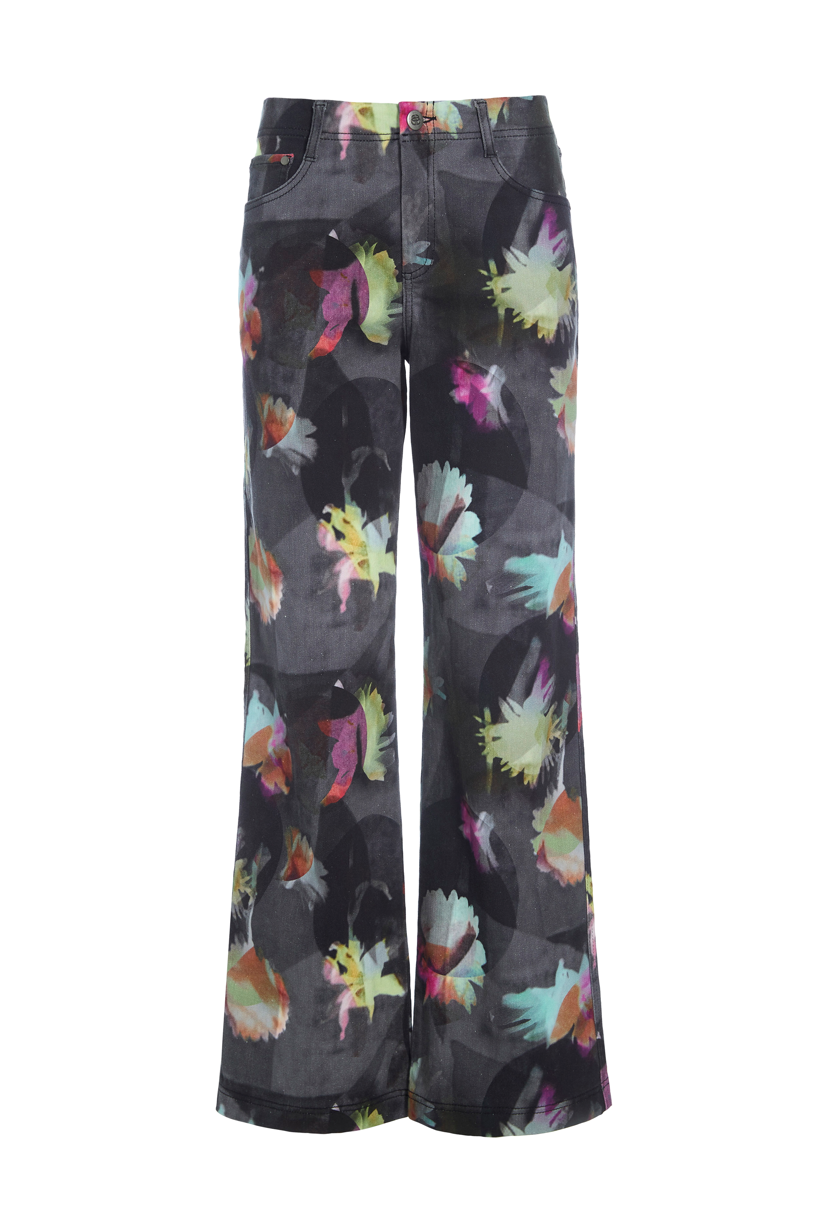 • Mønstrede jeans• Femlommemodel• Strækkvalitet• Benafslutninger med svaj• Gylp med lynlås• Indre benlængde: 80 cm i størrelse S