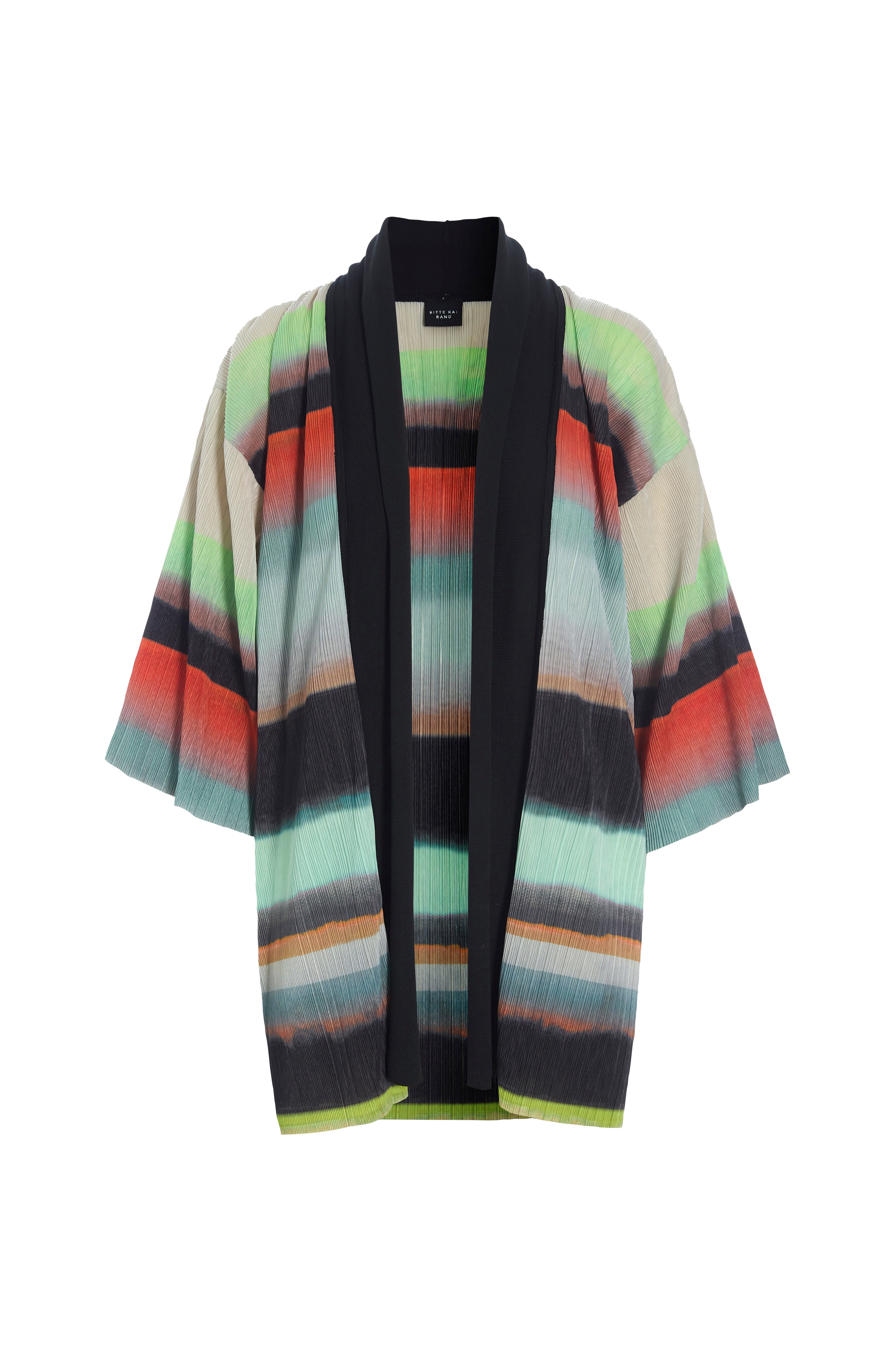 • Multifarvet, plisseret kimono• Åben front• Brede, 3/4 lange ærmer