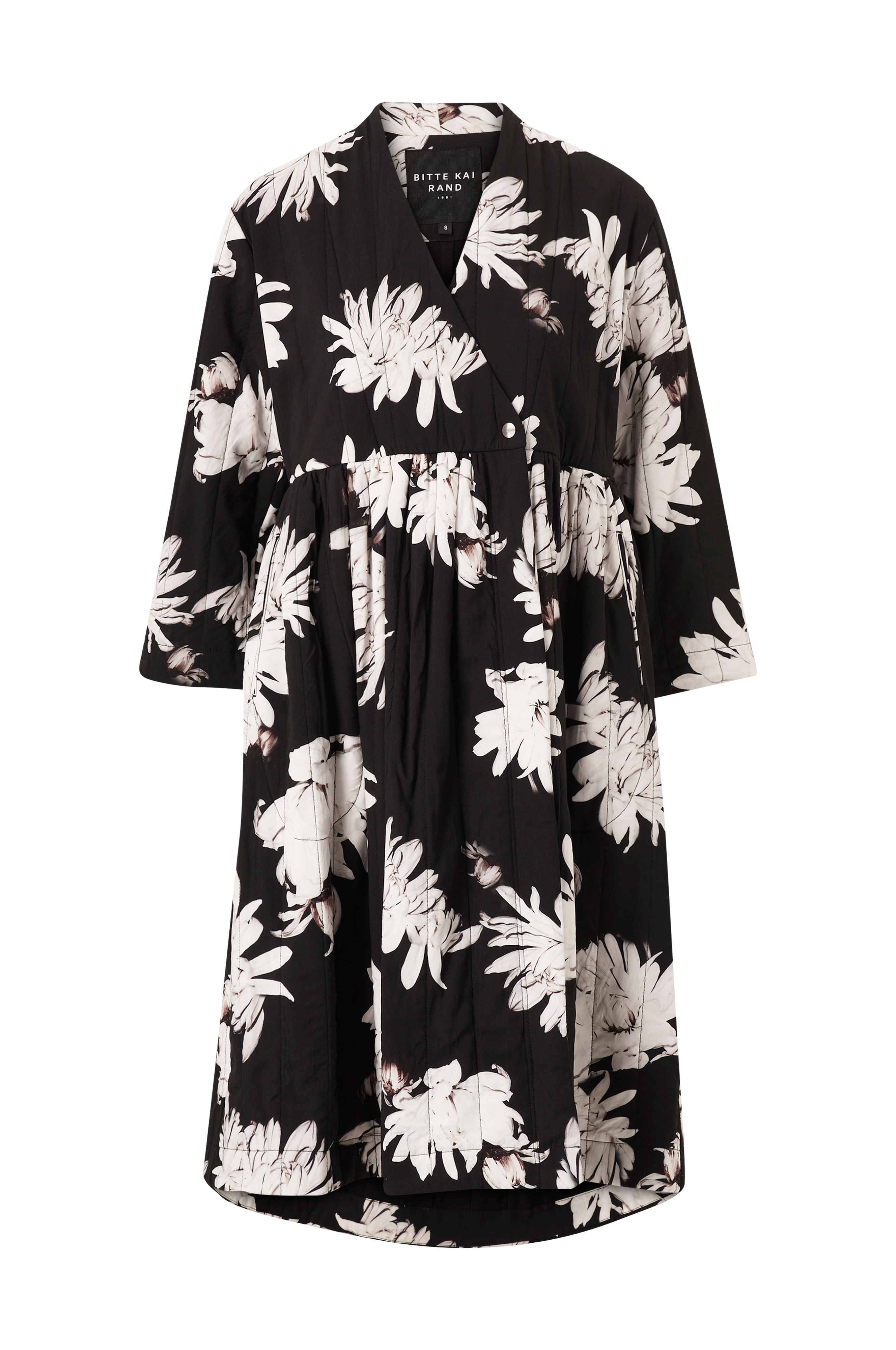 • Mønstret hybrid mellem en jakke og en kjole• Slå-om design med trykknap ved taljen• Let foret model• Lange ærmer• Lommer i siderne• Længde: 108 cm i størrelse S