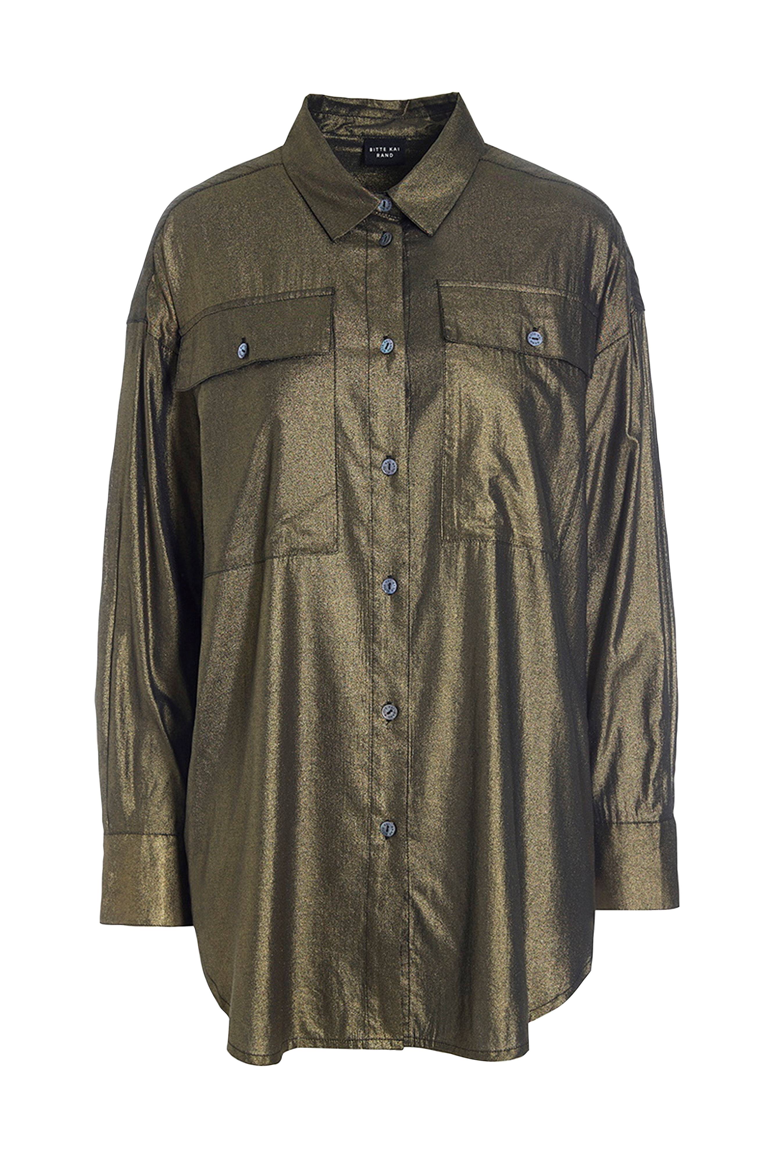 • Lang, bred model• Lille krave• Knapper foran• Store brystlommer med låg• Langt ærme med manchet• Afrundet søm med længere bagside