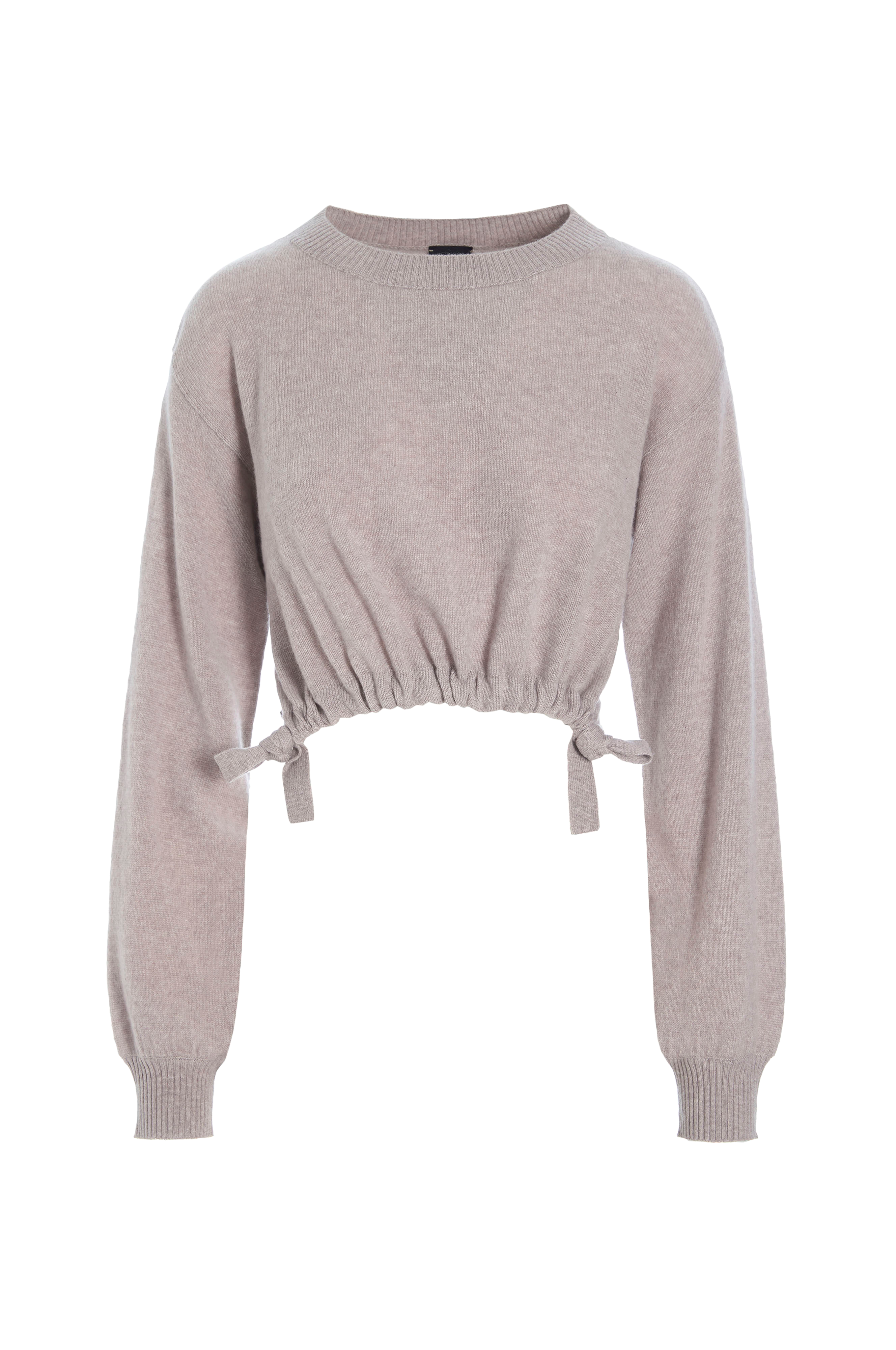 • Trøje i blød kashmir• Croppet model• Træksnørre ved nederste kant• Nedsænkede skuldre• Ribmanchet ved manchetterne