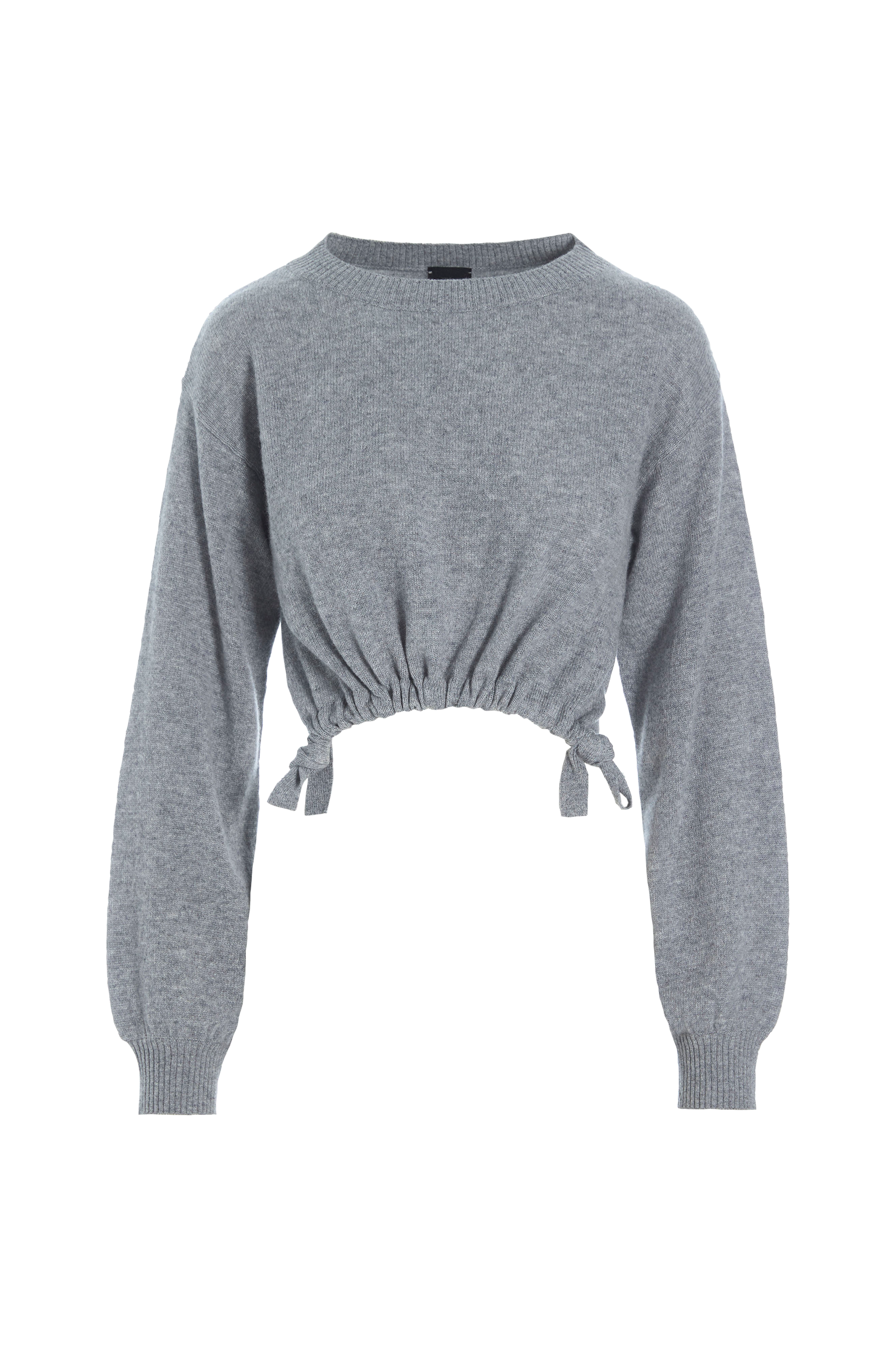 • Trøje i blød kashmir• Croppet model• Træksnørre ved nederste kant• Nedsænkede skuldre• Ribmanchet ved manchetterne