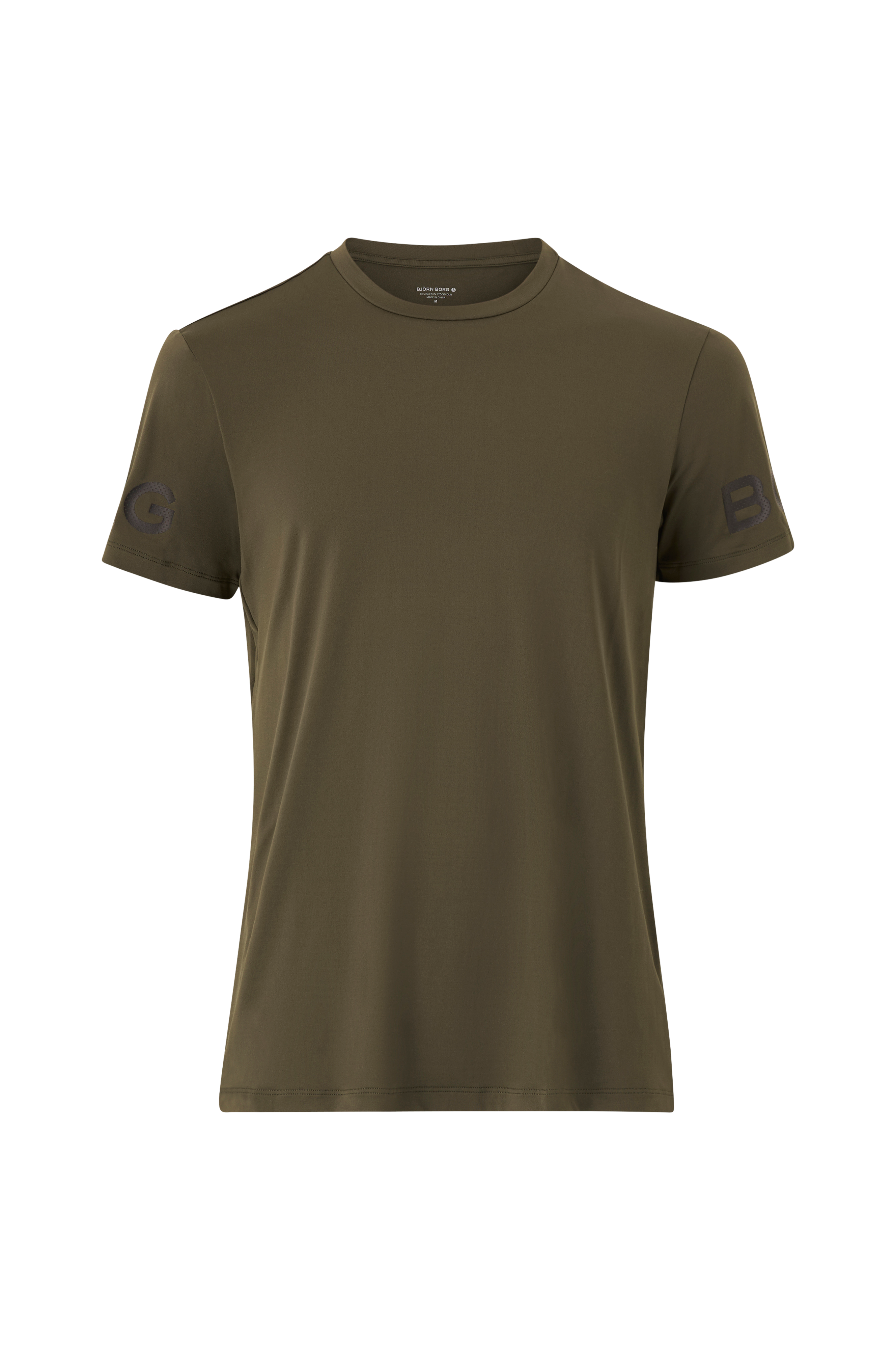 Trænings-T-shirt Tee Borg fra Björn Borg i Hydro Pro-materiale som transporterer sveden væk og holder dig tør under træning. Rund, finribbet halsudskæring og Borg-print på ærmerne. Længde ca. 74 cm i str. M.