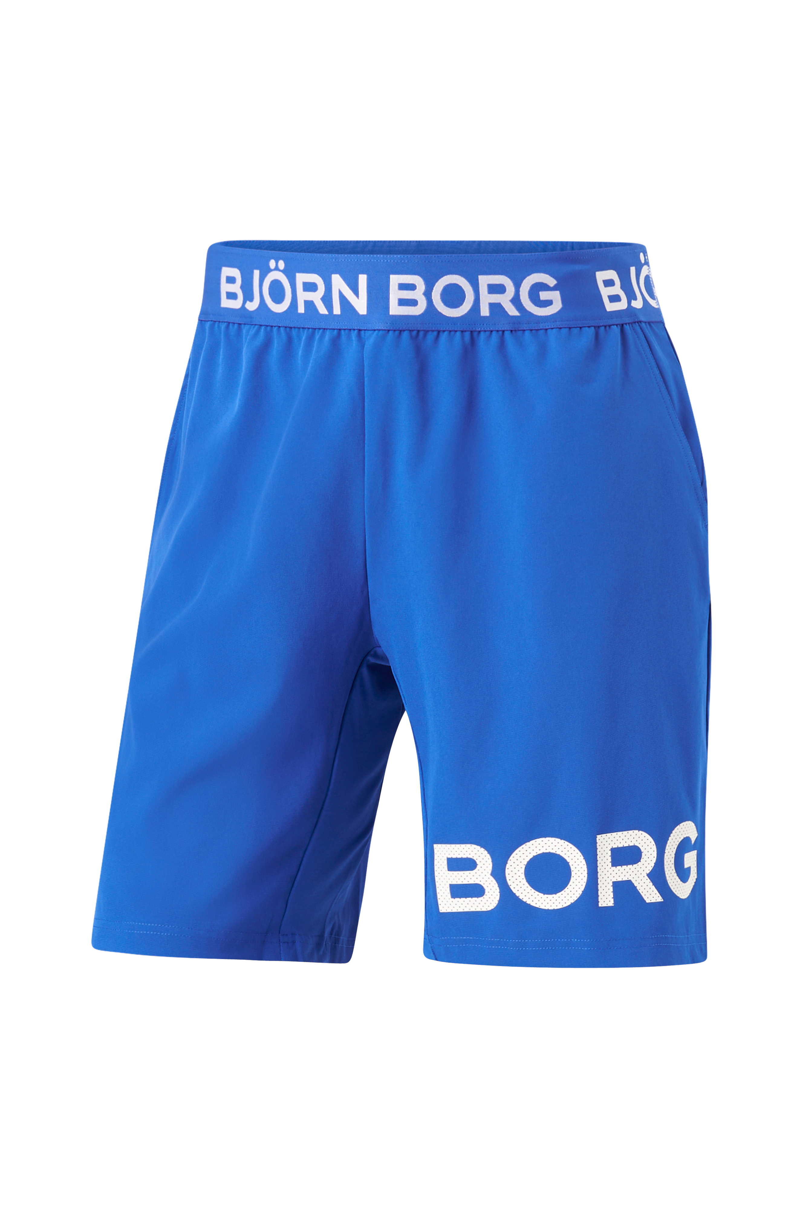 Træningsshorts August fra Björn Borg er lavet i et tyndt og hurtigtørrende Hydro-Pro-materiale med stretch, som gør at du kan træne i mange timer. To sidelommer. 5 cm bred elastiklinning med indvendig løbegang. Indvendig benlængde ca. 22 cm i str. M.