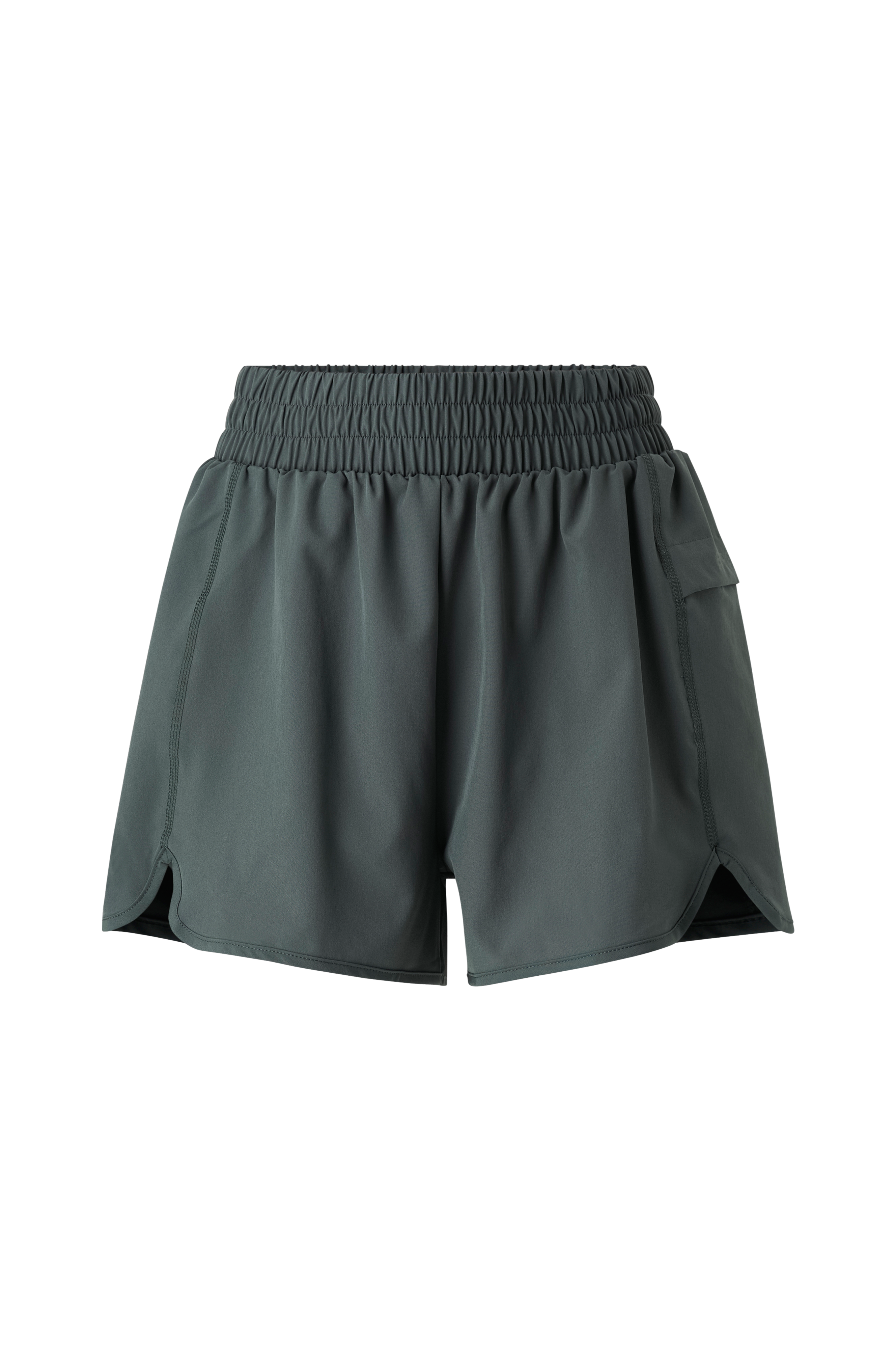 • Korte shorts• Bred elastik ved taljen• Indvendig træksnørre• En benlomme• Let materiale