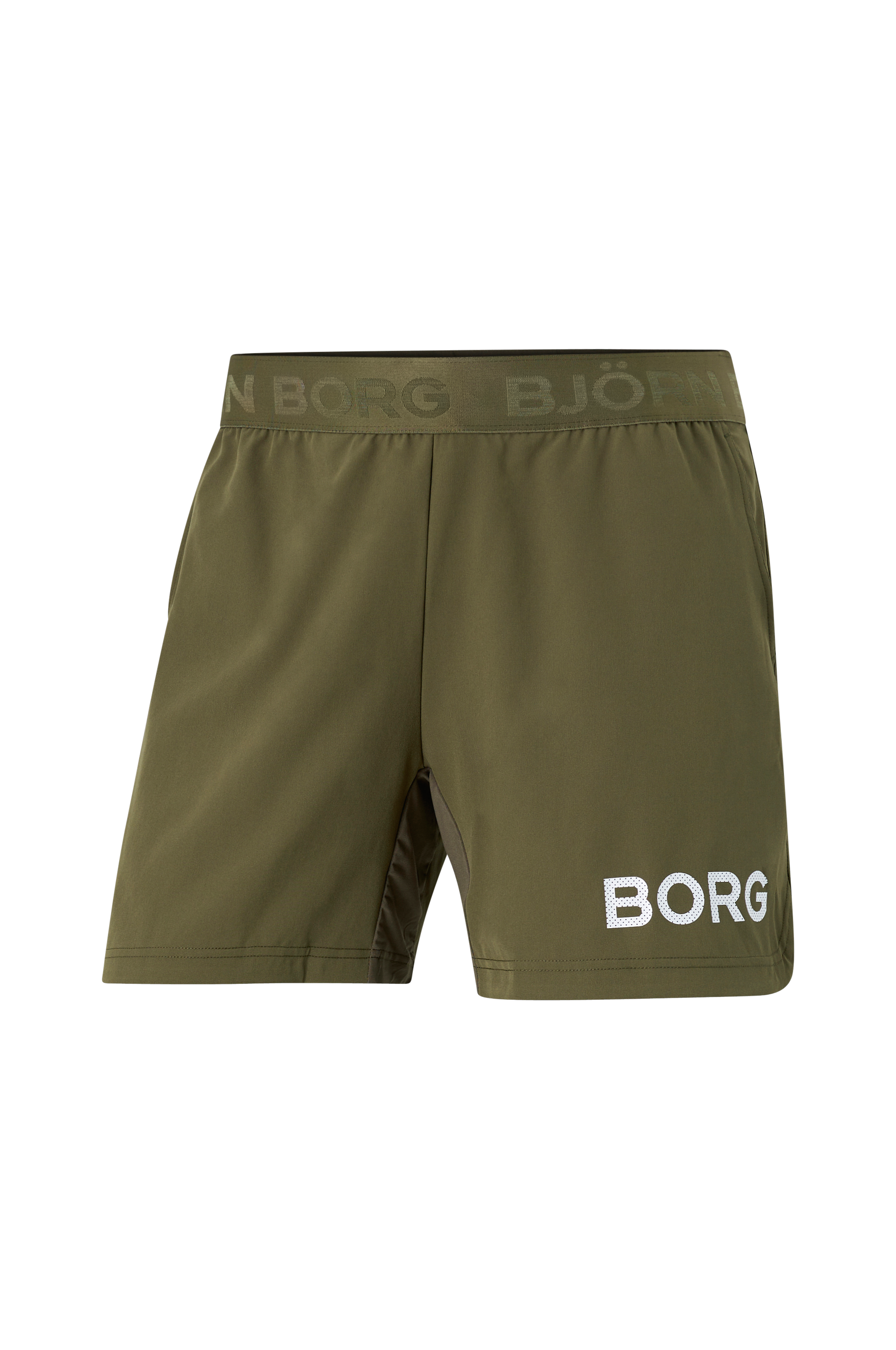 • Bredt elastisk bånd med logo ved taljen