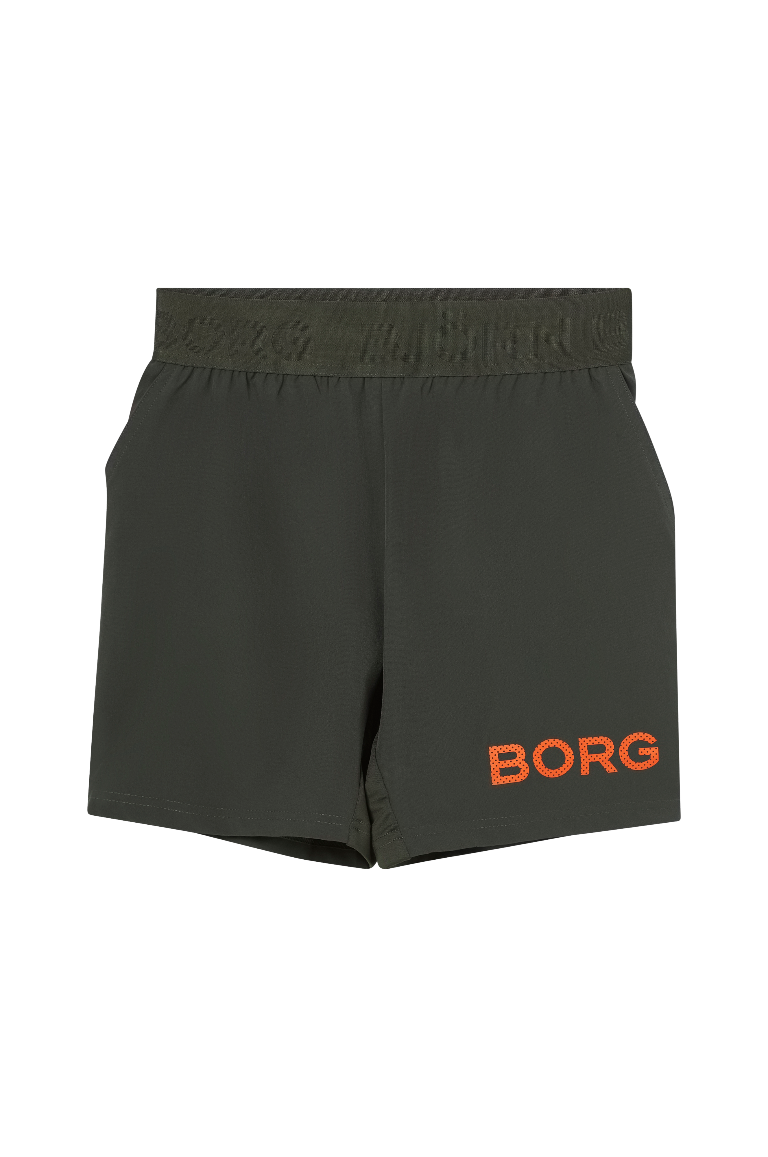 • Vævet letvægtsmateriale• Firevejsstræk• Elastisk talje med indvendig træksnørre• To sidelommer