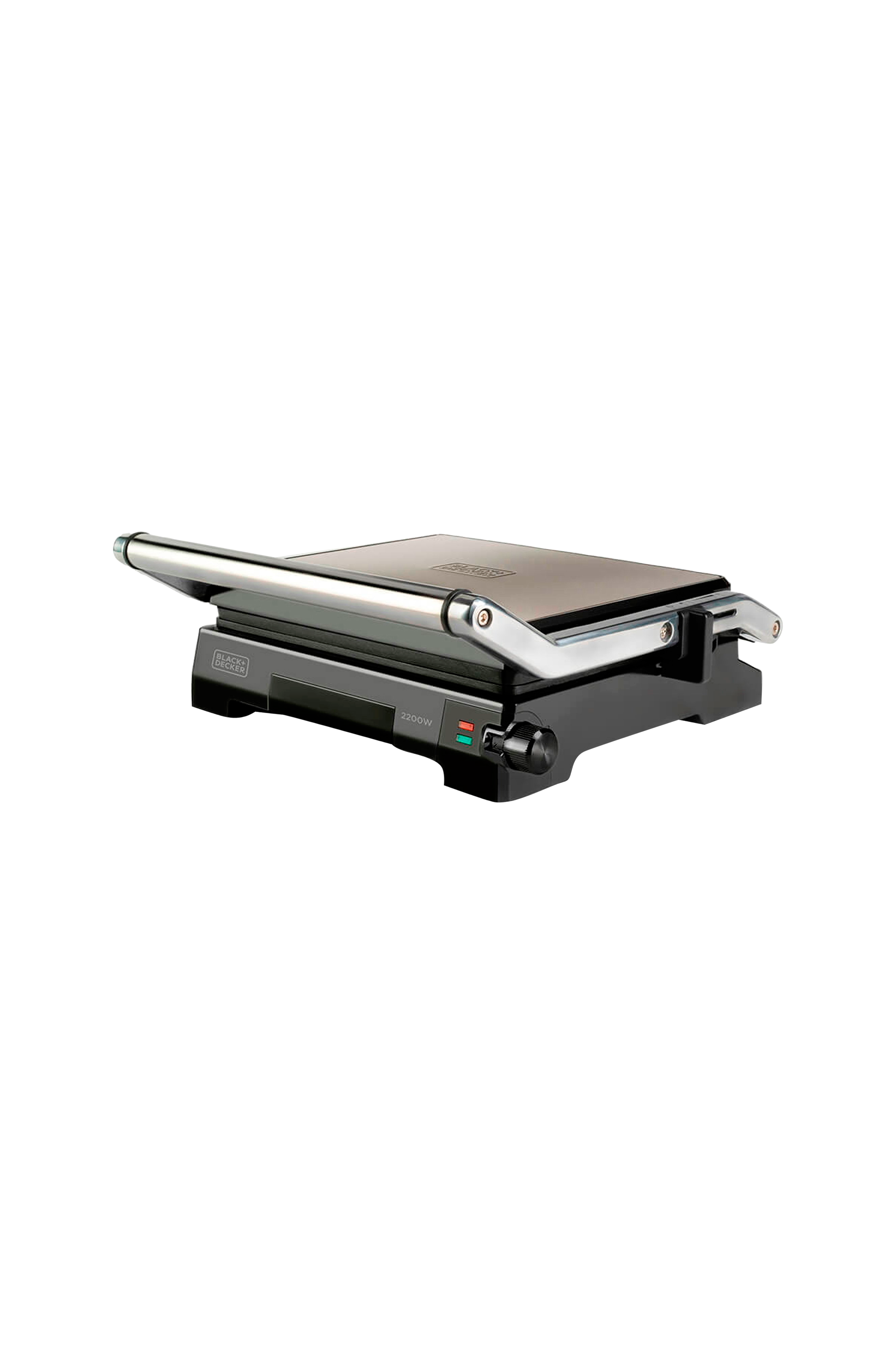 Rist eller forsegl sandwich eller tilbered grøntsager, kød og fisk på bxgr2200e-grillen fra black+decker. En grill med plader, der måler 14,5 x 23 cm og har en effekt på 2200w, der garanterer en hurtig opvarmning af pladerne og hurtig tilberedning. Derudover har den en temperaturkontrol. Grillpladerne har en non-stick belægning og er helt pfoa og ptfe-fri, de kan også åbnes 180º, så du kan lave mad på begge plader på samme tid. Desuden er den øverste plade fuldt vipbar og tilpasser sig enhver madtykkelse, men har også et trinsystem, der gør det muligt at låse den i 6 forskellige positioner for at smelte ost, grille eller opvarme uden at røre ved maden. Pladernes non-stick-belægning giver praktisk og nem madlavning samt hurtigere rengøring. Finishen på bxgr2200-grillen er designet til at give holdbarhed og maksimal praktisk anvendelighed. Derfor har den et kabinet i rustfrit stål, et cool touch-håndtag og en indbygget lås, der gør det muligt at lukke grillen sikkert og også at opbevare den i lodret position.