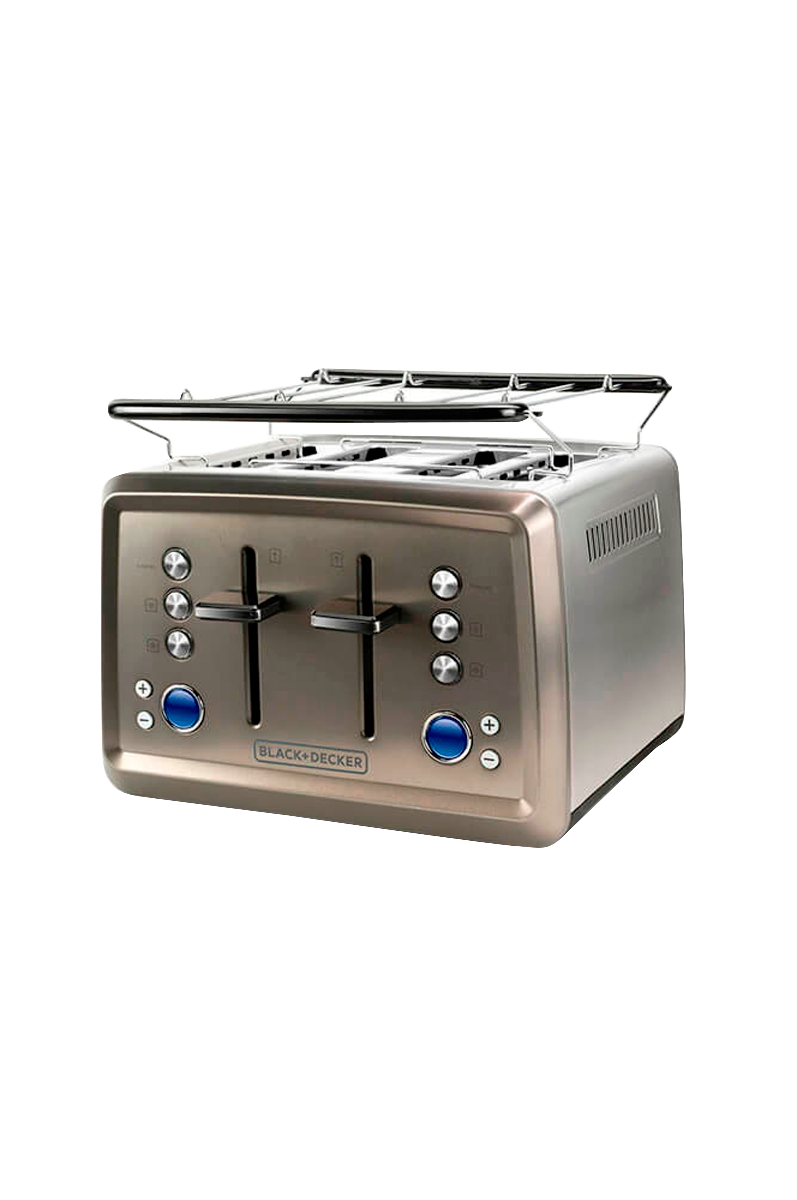 Lav op til 4 stykker toast på én gang med bxto1960e brødristeren fra black + decker. Se ristningsniveauerne til enhver tid takket være de indbyggede lcd-skærme. Der er 6 niveauer, og du kan nemt justere dem med + og - knapperne. Brødristeren har en effekt på 1960w og har 3 forskellige funktioner. Hvis du vil annullere ristningen, skal du bruge annulleringsfunktionen. Hvis du derimod vil gøre et tidligere ristet stykke brød sprødt igen, skal du bruge genopvarmningsfunktionen. Og hvis du vil nyde et gyldent og sprødt stykke toast, og du har frosset brød, skal du vælge optøningsfunktionen. Bxto1960e har et automatisk centreringssystem. Med andre ord placerer brødristeren automatisk brødskiven i midten, hvilket garanterer en ensartet og jævn ristning. Derudover har den en aftagelig bagerist til opvarmning af bagværk som boller, bagels, croissanter, kager og meget mere. Den har 4 åbninger, så du kan riste op til 4 skiver brød på én gang. Den har to aftagelige og separate krummeopsamlerbakker for at gøre rengøringsprocessen så enkel som muligt. Den har også LED-indikatorer, der til enhver tid viser dig, hvilke handlinger der udføres, samt kabelopbevaring og skridsikre fødder. Design i rustfrit stål, der giver ekstra holdbarhed og elegance til produktet.