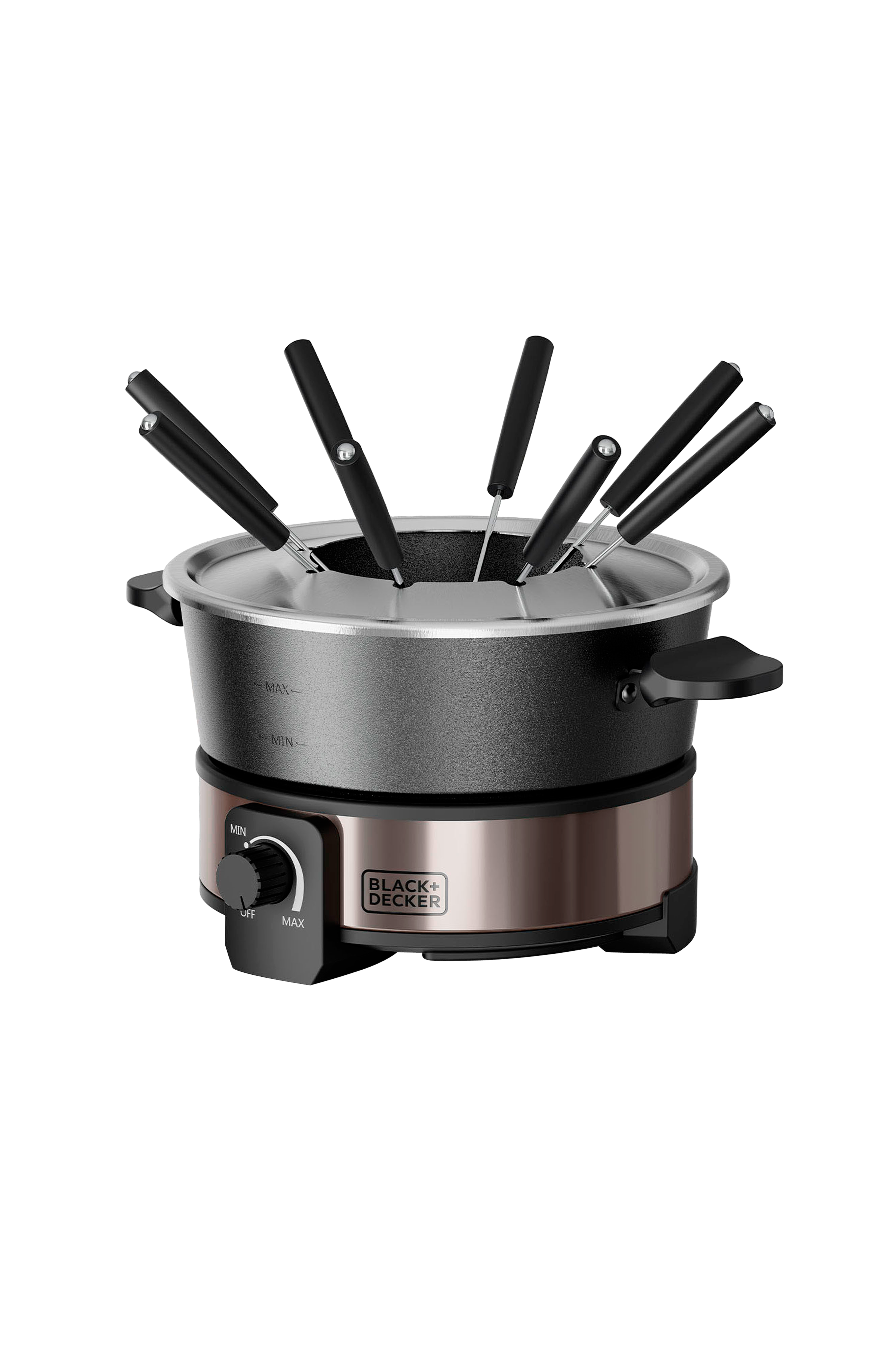 Nyd en dejlig fondueoplevelse med denne alsidige fonduemaskine. Den har et kraftigt varmeelement på 1000 W og et 4-i-1-design, som gør den velegnet til oste-, bouillon-, olie- og chokoladefonduer. Med en generøs kapacitet på 2 liter kan den rumme op til 8 personer, komplet med 8 gafler til en fælles spiseoplevelse. Fonduemaskinen har variable temperaturindstillinger, så du kan smelte ingredienser ved en lav temperatur eller stege dem ved en højere indstilling. Det stilfulde design med en finish i rustfrit stål tilføjer et strejf af elegance til enhver borddækning, hvilket gør den til en både funktionel og attraktiv tilføjelse til dit køkken.