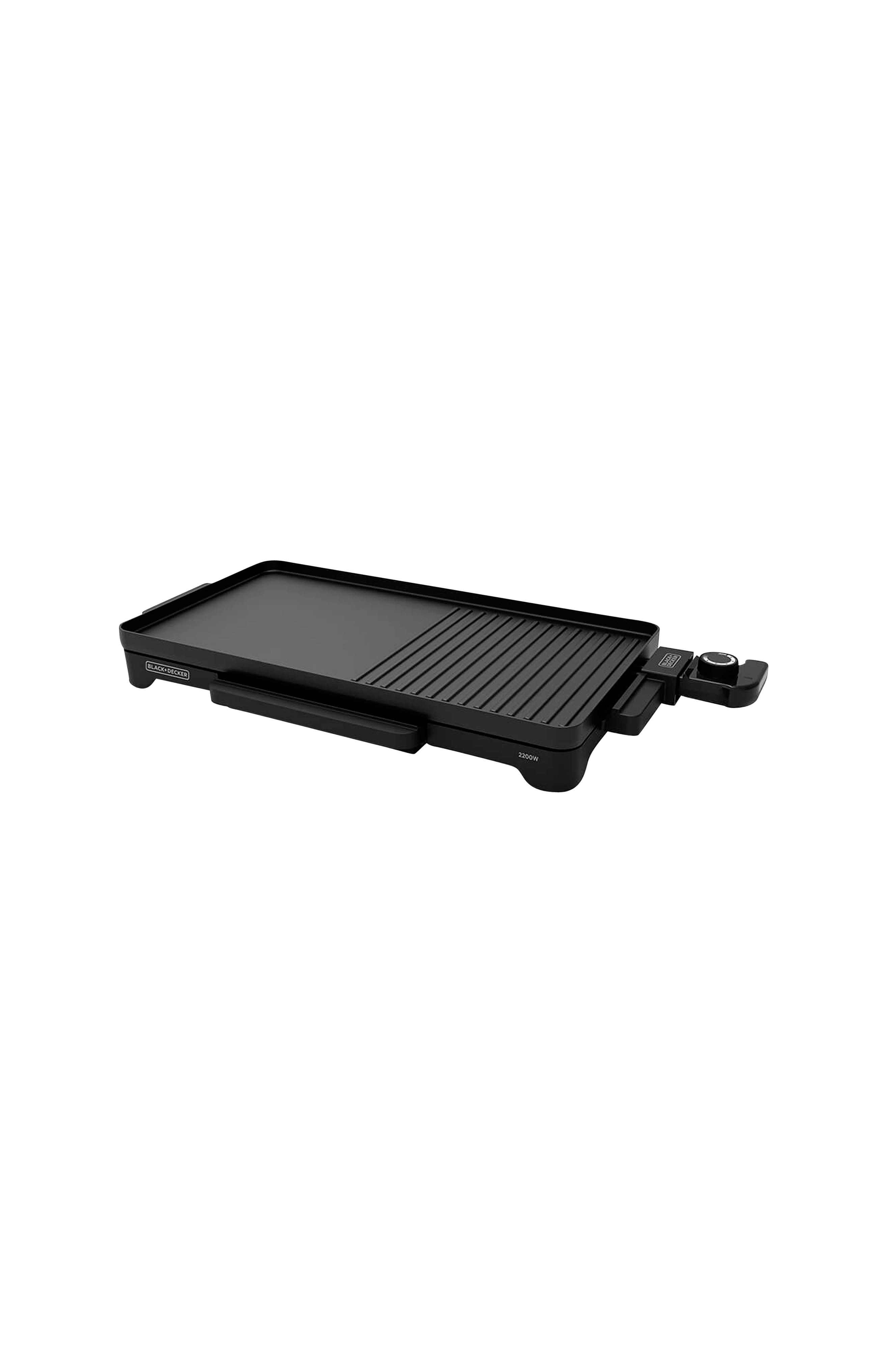 Steg kød, fisk og grøntsager på den mest velsmagende måde og uden olie med bxgd2200e halv glat halv grillplade fra black + decker. Den har en stor madlavningsbase på 49 x 27 cm og en høj effekt på 2200 W, så du kan tilberede et stort antal opskrifter på kortest mulig tid. Stegepladens termostat er aftagelig, så du kan tilberede maden færdig ved bordet. Du skal bare trække stikket ud, tage den med hen til bordet og tilberede maden efter din smag. Stegepladen har en justerbar temperaturkontrol, der passer til enhver type mad. Håndtagene på stegepladen er ergonomiske og har cold touch, så du kan transportere den uden problemer. Pladens non-stick-belægning og den integrerede fedtopsamlingsbakke gør det nemmere at rengøre stegepladen. Fedtopsamlingsbakken opsamler overskydende fedt og olie og hjælper dermed med at reducere røg og lugt. Grillpladen fra black + decker har skridsikre fødder, så du har stor stabilitet under tilberedningsprocessen. Den har også en kontrollampe, som altid viser, om grillpladen er tændt eller slukket. Dens lange og smalle design gør det muligt at opbevare den praktisk overalt i køkkenet.