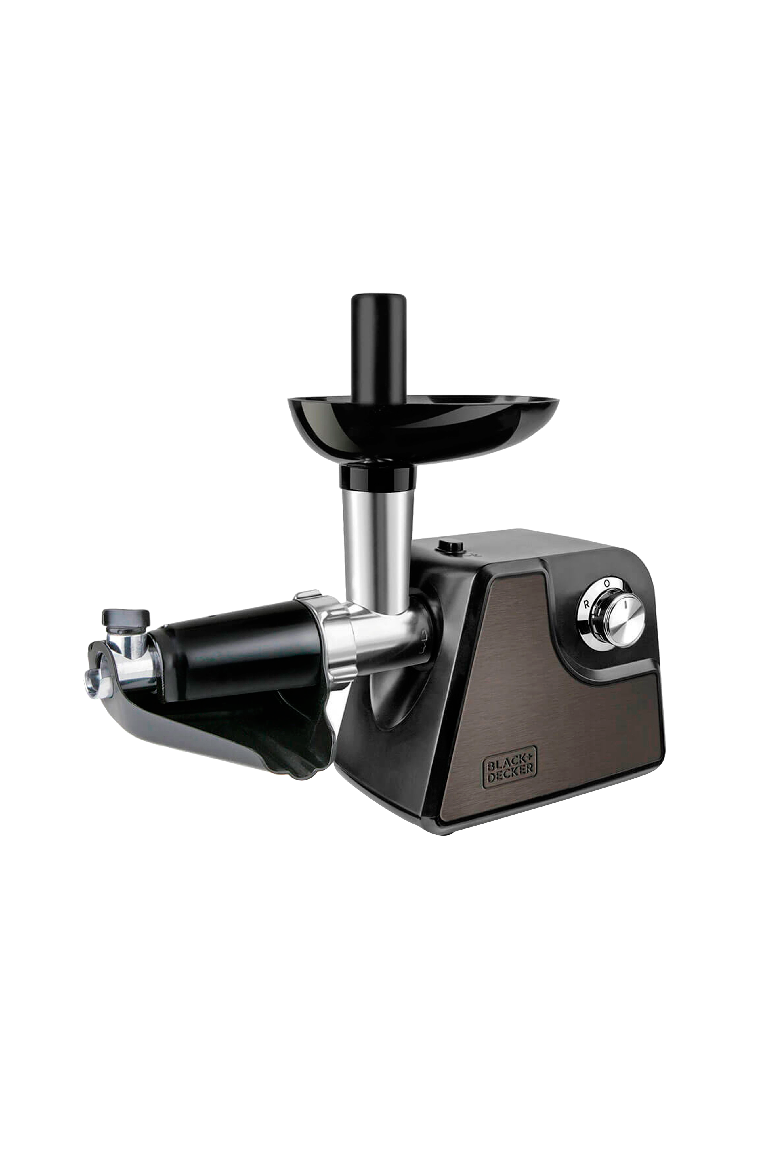Komplet kødhakker, inklusive et sæt til nemt at lave tomatsauce, 3 skæreskiver i rustfrit stål, specielt mundstykke til at lave kibbeh og tilbehør til pølsefyld. Alt, hvad du skal bruge for hurtigt at tilberede kød derhjemme, med en kraftig, robust kværnmekanisme. Vælg mellem de tre skæreskiver, og hak kødet på et øjeblik. Nem, hurtig og praktisk. Kødhakkeren måler 41 x 14 x 35 cm og vejer 2,4 kg.