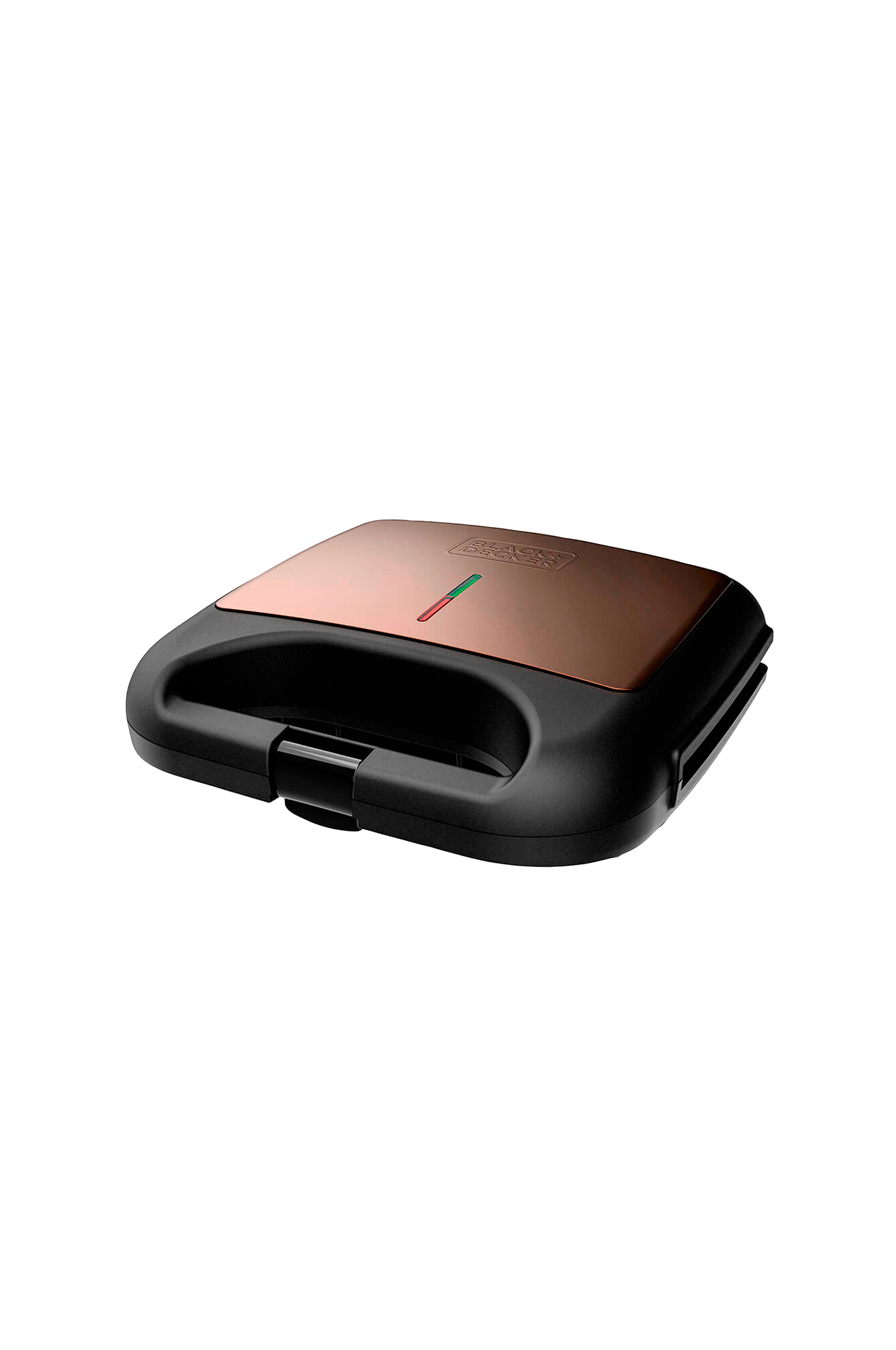 Lav lækre sandwiches og paninier med sandwichmaskinen fra black+decker. Takket være grillpladerne på 21,5 x 12,5 cm kan du lave to varme sandwiches på samme tid. Overfladen på sandwichgrillpladerne er non-stick, hvilket gør rengøringsprocessen hurtigere og nemmere. En fugtig klud er tilstrækkelig til at rengøre dem. Øverst på brødristeren er der to kontrollamper, som fortæller dig, om pladerne er klar til at blive tilberedt. Den røde kontrollampe viser, at pladerne stadig ikke har nået den rette temperatur. Når den grønne kontrollampe lyser, betyder det, at du kan sætte sandwichene på til tilberedning. Takket være den høje effekt får du resultater i løbet af få minutter. Det kompakte design på 22,5 x 22 x 7,5 cm gør, at du kan opbevare brødristeren hvor som helst, og du kan også opbevare den lodret. Brødristerens bund har skridsikre fødder for at garantere maksimal stabilitet og sikkerhed under tilberedningsprocessen. Den fingeraftrykssikre finish sikrer, at sandwichmaskinen forbliver pæn og ren.