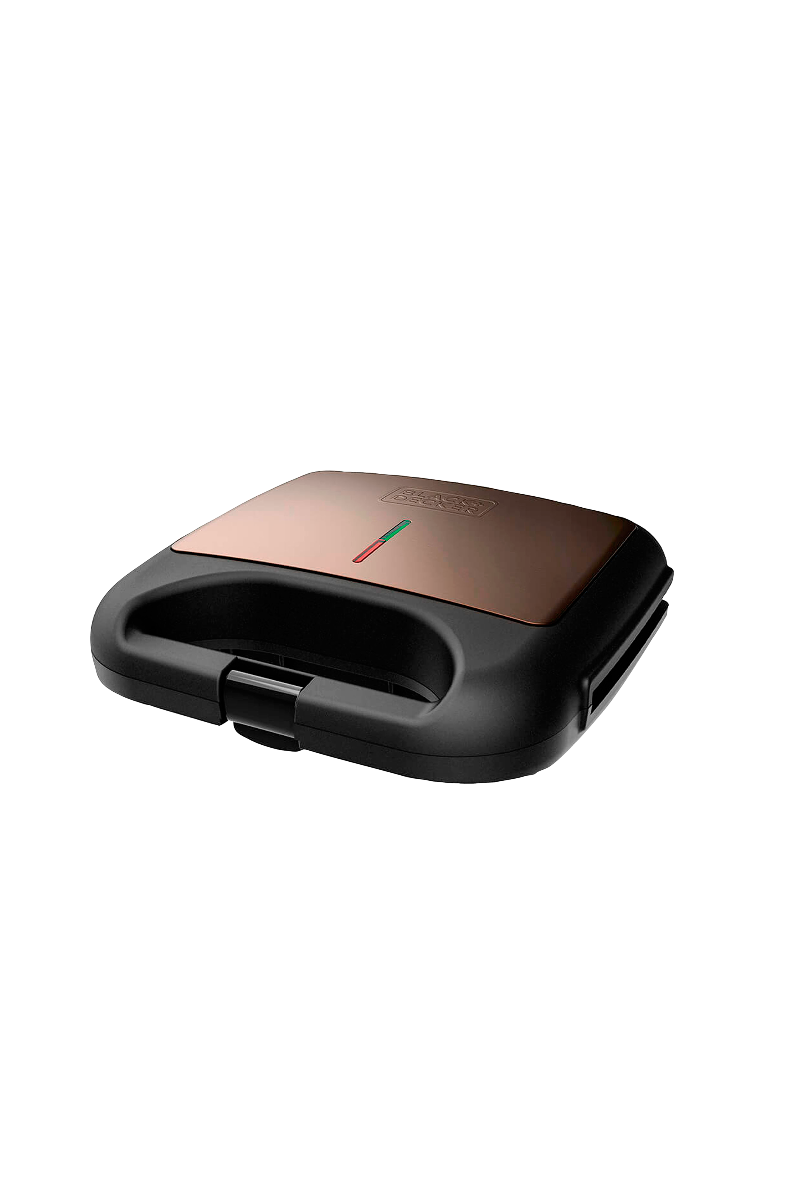 Lav lækre sandwiches og paninis med sandwichmaskinen fra black+decker. Takket være de 21,5 x 12,5 cm store grillplader kan du riste og brune alle typer brød. Nyd sprødere og mere smagfulde snacks på få minutter med black+decker sandwich maker. Sandwichmakerens grillplader har en non-stick-belægning, der sikrer, at madstykker ikke sætter sig fast på overfladen. En fugtig klud er tilstrækkelig til at rengøre dem. Øverst på sandwichtoasteren er der to kontrollamper, som fortæller dig, om pladerne er klar til at blive tilberedt. Den røde kontrollampe viser, at pladerne stadig ikke har nået den rette temperatur. Når den grønne kontrollampe lyser, betyder det, at du kan sætte sandwichene til at tilberede dem. 750 W effekt fremskynder opvarmningstiden, så du kan nyde dine sandwiches så hurtigt som muligt. Det kompakte design på 22,5 x 22 x 7,5 cm gør, at du kan opbevare brødristeren overalt, og du kan også opbevare den lodret. Brødristerens bund har skridsikre fødder for at garantere maksimal stabilitet og sikkerhed under tilberedningsprocessen. Den fingeraftrykssikre finish sikrer, at sandwichmaskinen forbliver pæn og ren.