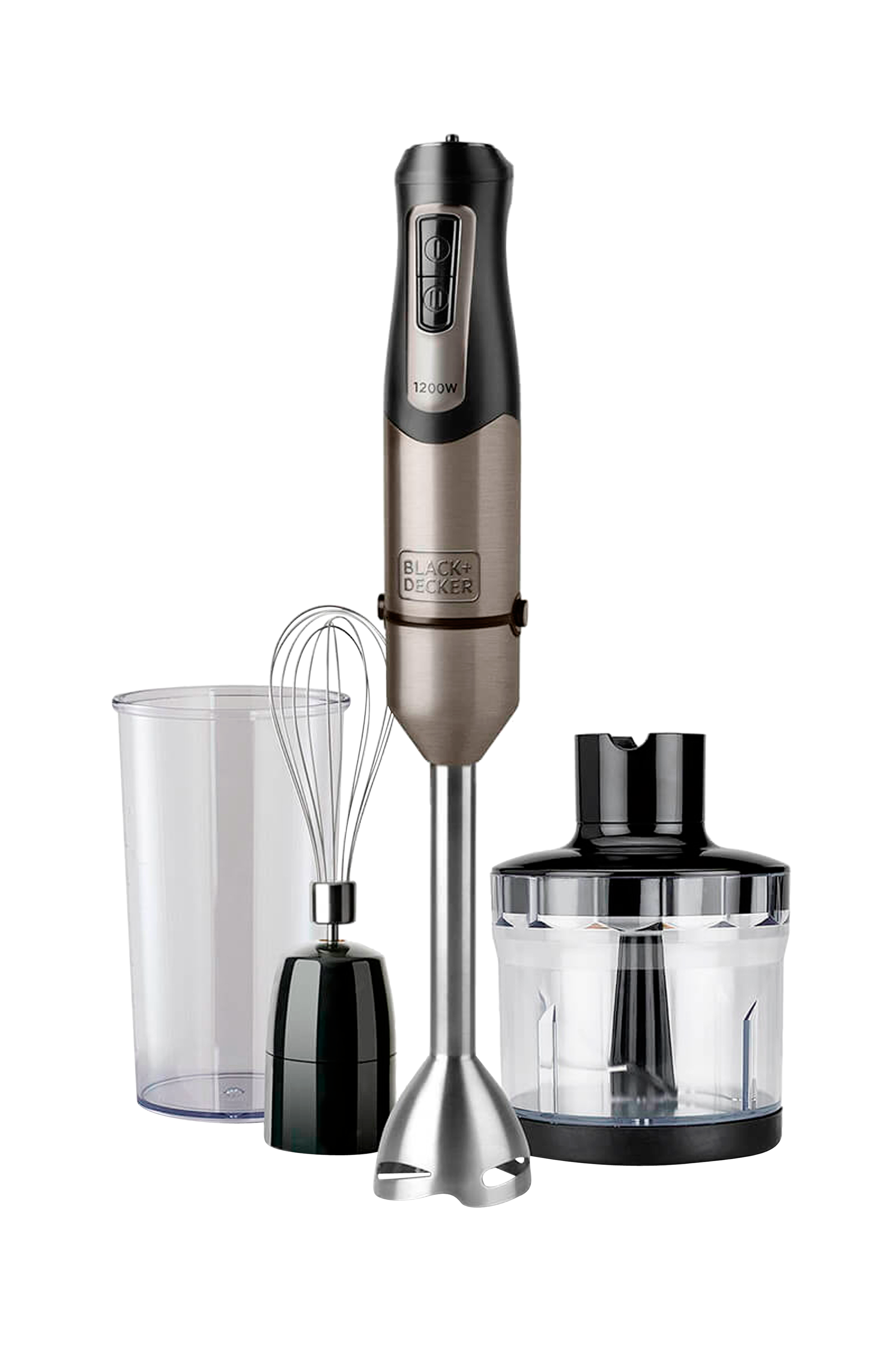Denne højtydende stavblender bxhb1200e fra black+decker er det ultimative køkkenredskab, der takket være sin kraftige 1200w-motor kan blende selv de hårdeste fødevarer. Den leveres med et praktisk 250 ml målebæger, et piskeris og en 350 ml hakkekande, som giver alsidighed og uendelige muligheder. Den arbejder hurtigt og effektivt og kan indstilles til 20 forskellige hastigheder afhængigt af ingredienserne. Den har også en turbofunktion, som giver dig mulighed for at nå fuld effekt med et enkelt klik, så du får perfekte resultater på få sekunder. Stavblenderen har fire skarpe knive i rustfrit stål, som gør det nemt at blende smoothies eller supper, kværne protein, piske fløde og endda knuse is. Bladene er anbragt i en stænksikker hætte. Stangen kan let skilles ad for nem rengøring og kan sammen med alt tilbehøret vaskes i hånden eller i opvaskemaskine. Produktet er fremstillet af bpa-frie materialer af høj kvalitet og har et minimalistisk og moderne design. Den har en sort og grå børstet finish, og dele i rustfrit stål har en anti-fingeraftryksfinish, så overfladen altid forbliver i perfekt stand. Stavblenderen er nem at styre med to knapper på forsiden og en modulator på toppen. Det er en meget praktisk og let blender, der fungerer i alle situationer, optager lidt opbevaringsplads og gør din madlavning mere bekvem og effektiv.