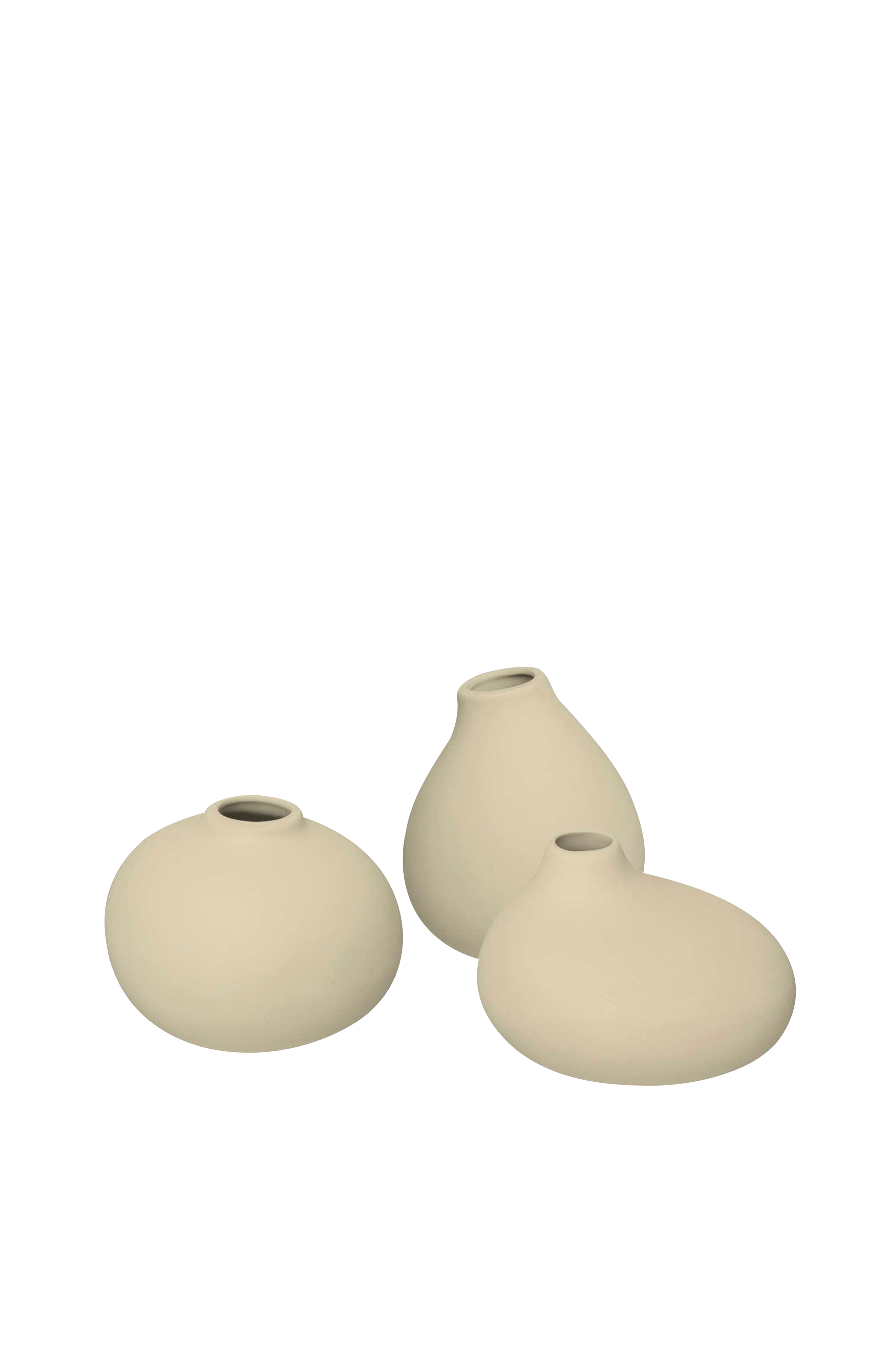 NONA Sæt med 3 Vaser i ubehandlet porcelæn fra Blomus. De smukke vaser er lavet af modstandsdygtigt porcelæn, der har stået uglaseret og ru. Små forskelle i form, farve og synlige linjer gør hver NONA Vase unik.