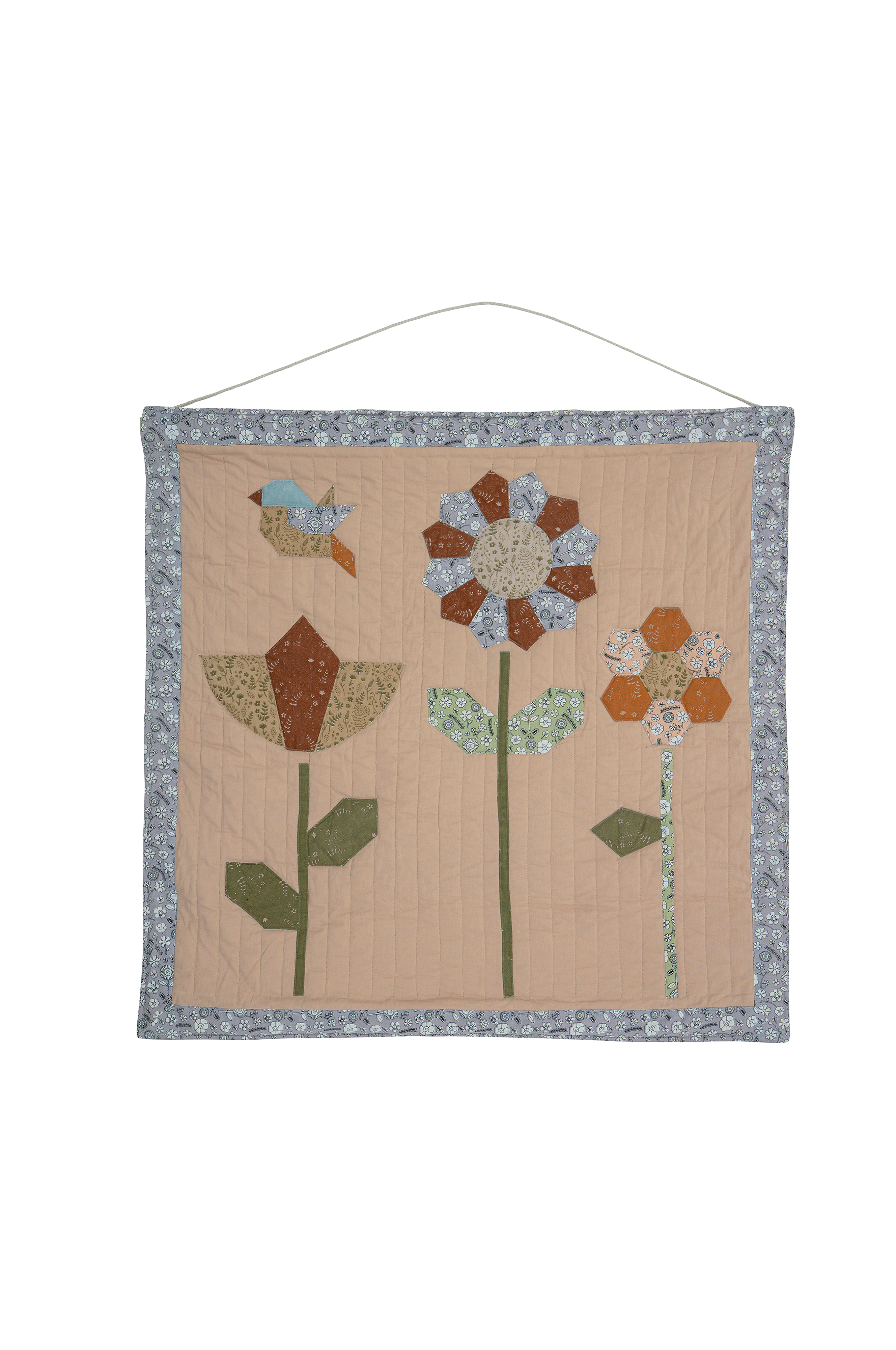 Tanne vægdekoration fra Bloomingville MINI er en multifunktionel vægdekoration med blomster og patchwork-effekt - hæng den på væggen som dekoration eller fjern pind og snor og brug den på gulvet som legemåtte. Bomuld