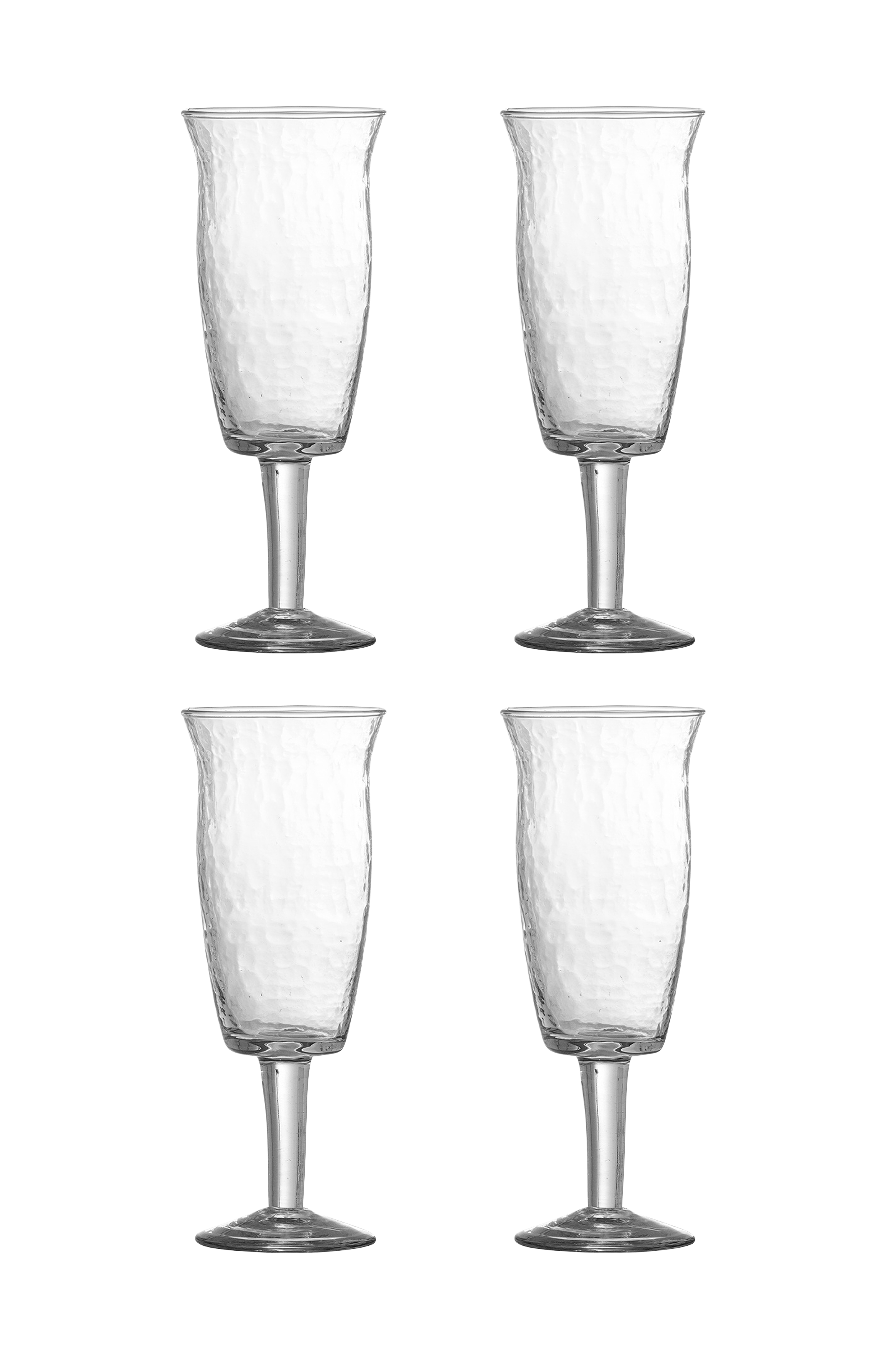 Vinglasset asha fra bloomingville er lavet af klart glas med en diskret hamret overflade, der giver et elegant og levende look. Sættet består af fire unikke vinglas, der er ideelle til at nyde vin med stil.