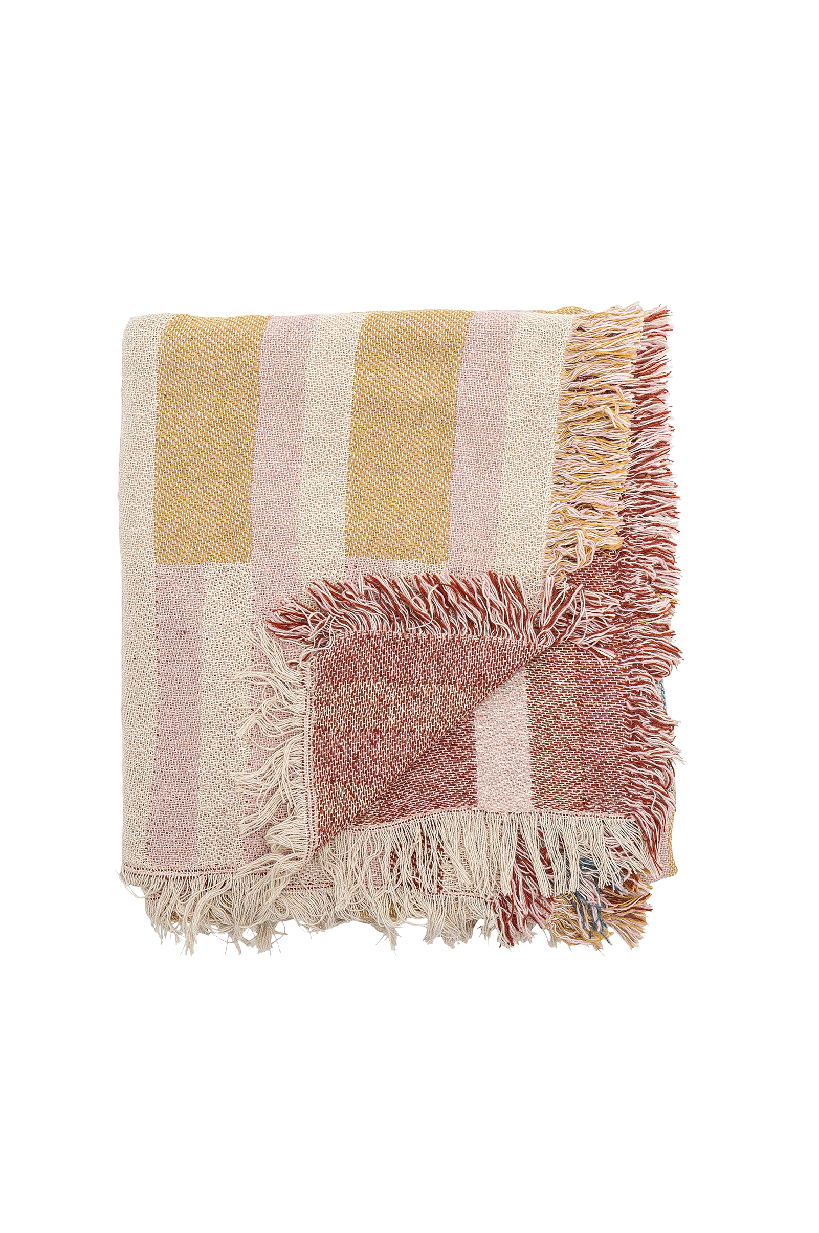Plaiden lane fra bloomingville er vævet af genbrugsbomuld og har et grafisk mønster. De dekorative frynser i enderne fuldender det afslappede look og gør plaiden velegnet til rolige stunder i sofaen.