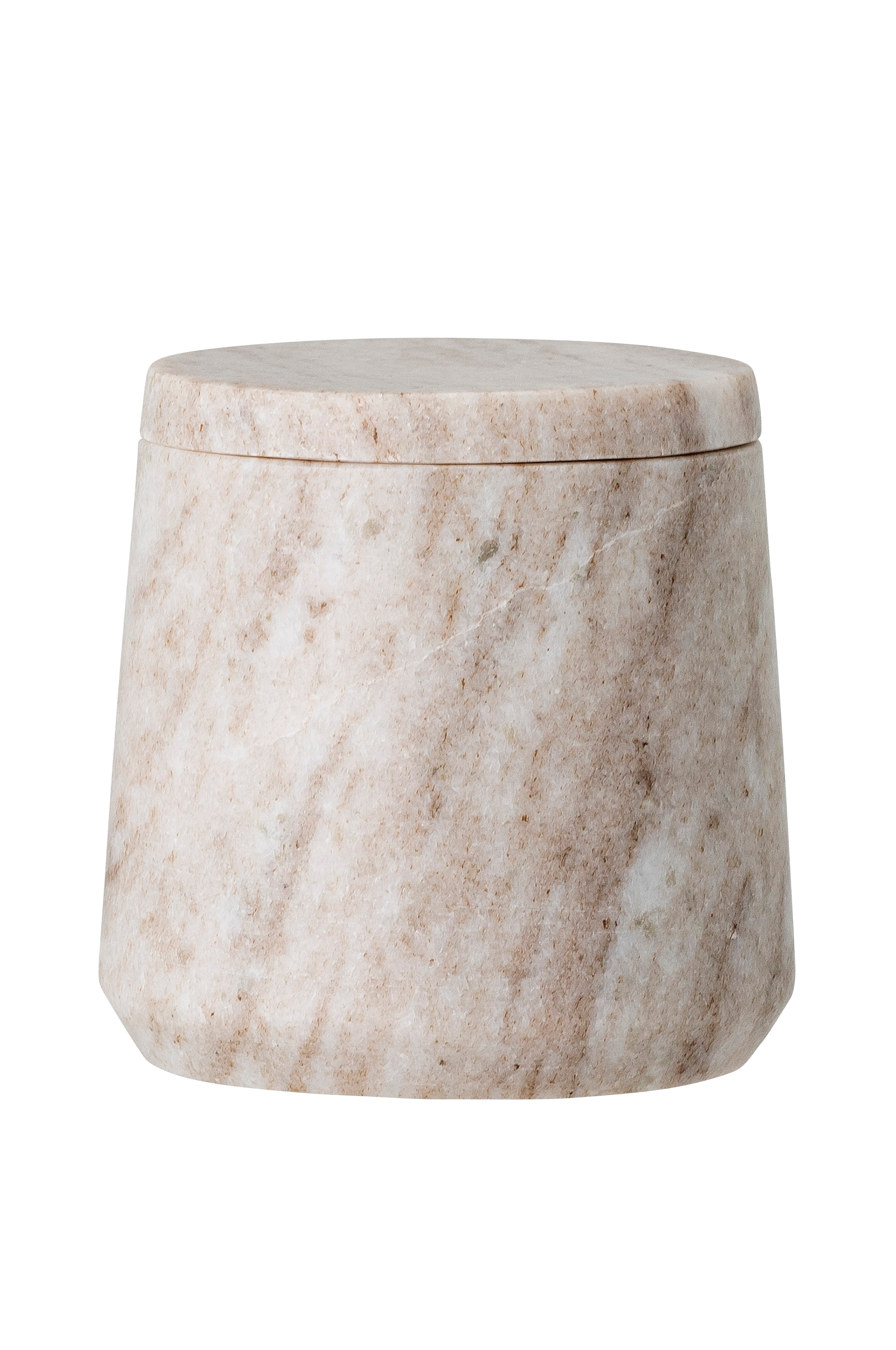Denne beholder er lavet af marmor og har et matchende låg af marmor. Beholderen er dekorativ som den er, og materialet af marmor giver en naturligt elegant stil. Men du kan også bruge den til småting - eller måske til det slik, du vil gemme for børnene og spise for dig selv. Det er op til dig.