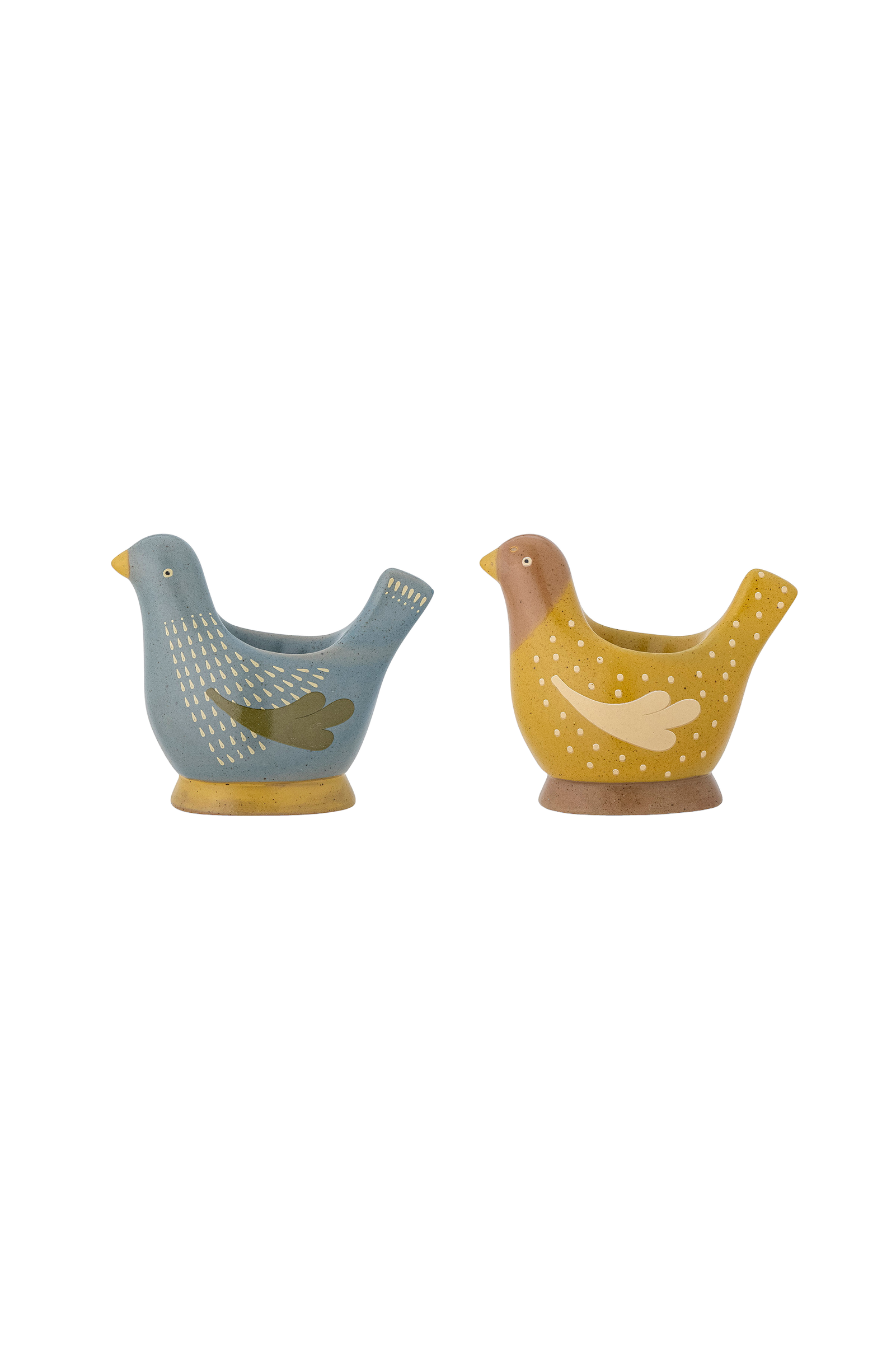 Birdy-æggebægeret fra bloomingville giver morgenbordet et legende touch. Sættet består af to charmerende æggebægre formet som fugle. Hvert æggebæger er håndmalet, hvilket giver dem et unikt og personligt udtryk. Da de er håndmalede, kan der forekomme variationer i intensitet.