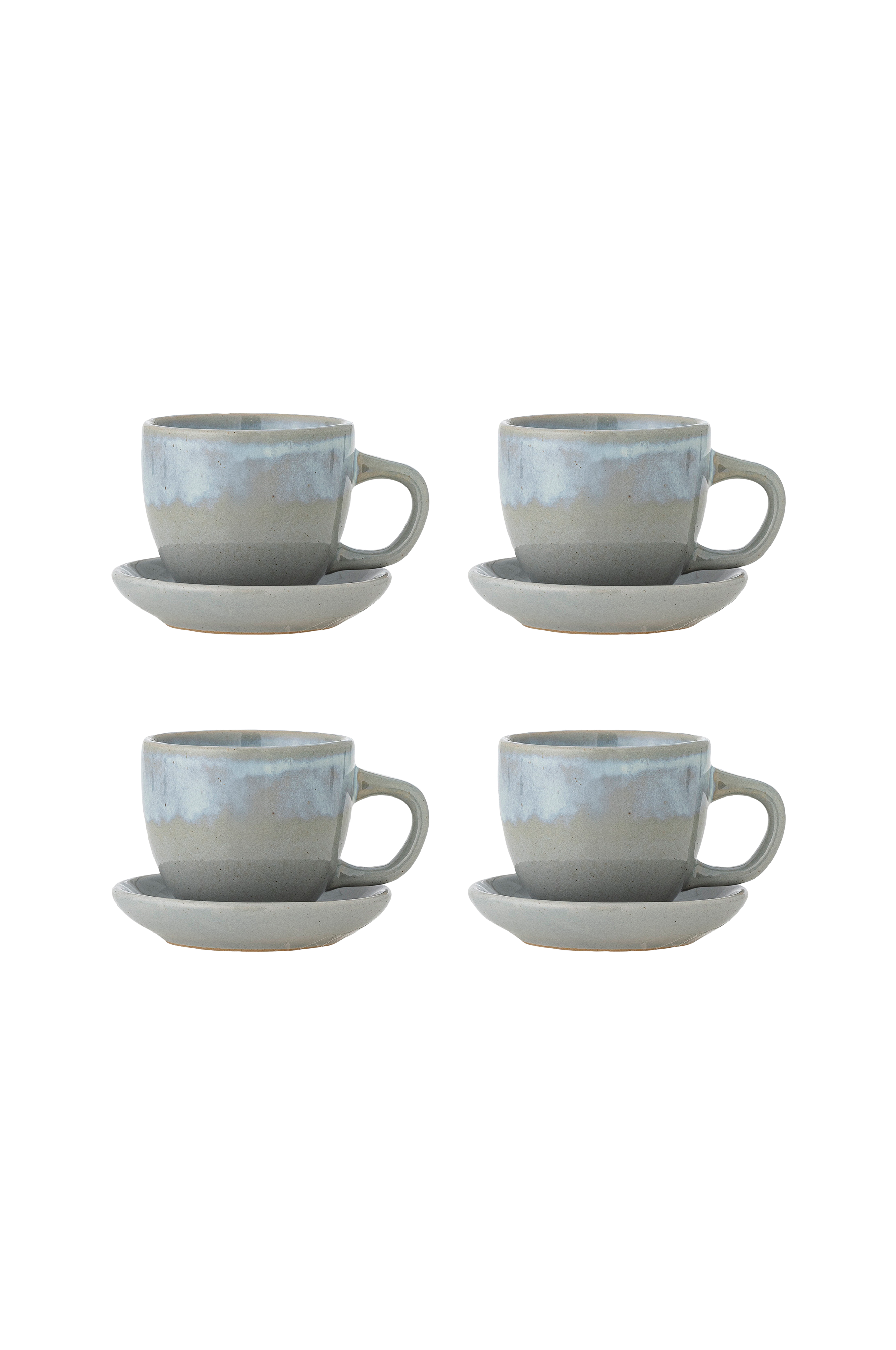 Brenta-koppen med underkop fra bloomingville kommer i et sæt på fire og er lavet af stentøj med en blød form og en smuk reaktiv glasur. De naturlige variationer i glasuren sikrer, at hver kop og underkop er unik.