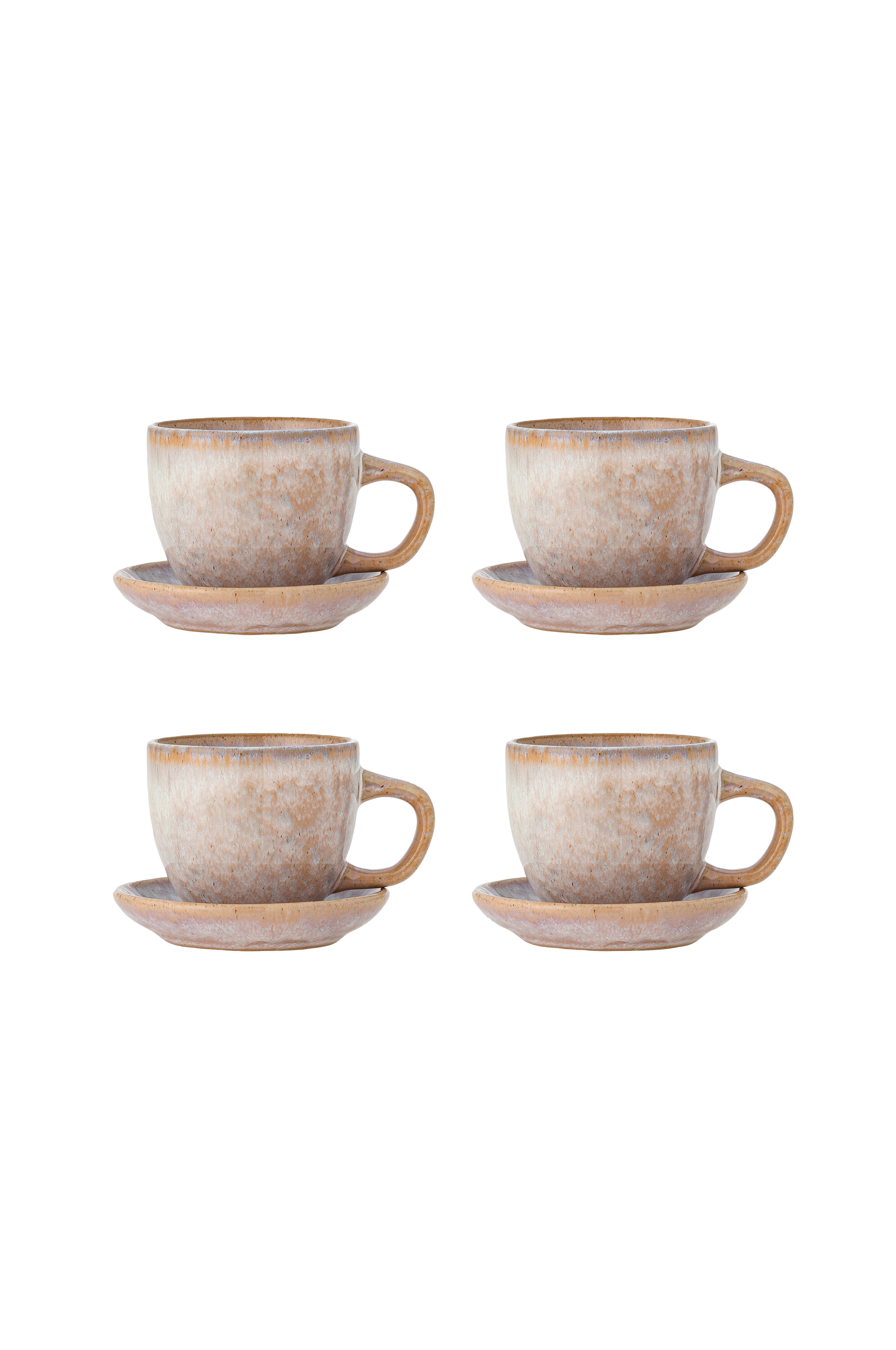 Brenta-koppen med underkop fra bloomingville kommer i et sæt på fire og er lavet af stentøj med en blød form og en smuk reaktiv glasur. De naturlige variationer i glasuren sikrer, at hver kop og underkop er unik.