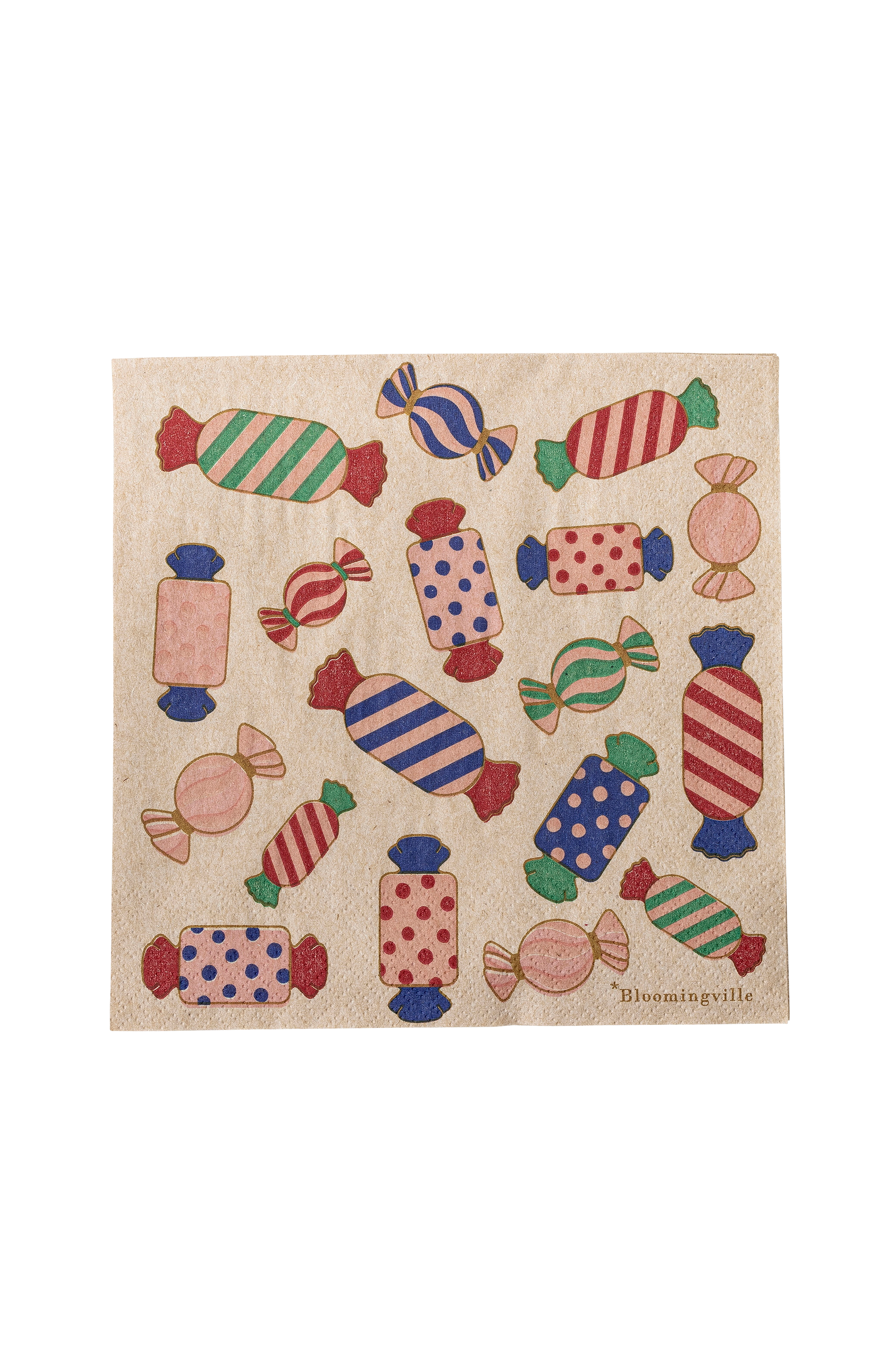 Caramella-servietten fra Bloomingville tilføjer et legende og farverigt touch til din borddækning. De søde illustrationer af levende slik skaber en festlig og indbydende atmosfære, hvilket gør dem perfekte til både højtider og fødselsdage. Pakken indeholder 20 servietter fremstillet af FSC®-certificeret genbrugspapir. Pakke med 20 stk.
