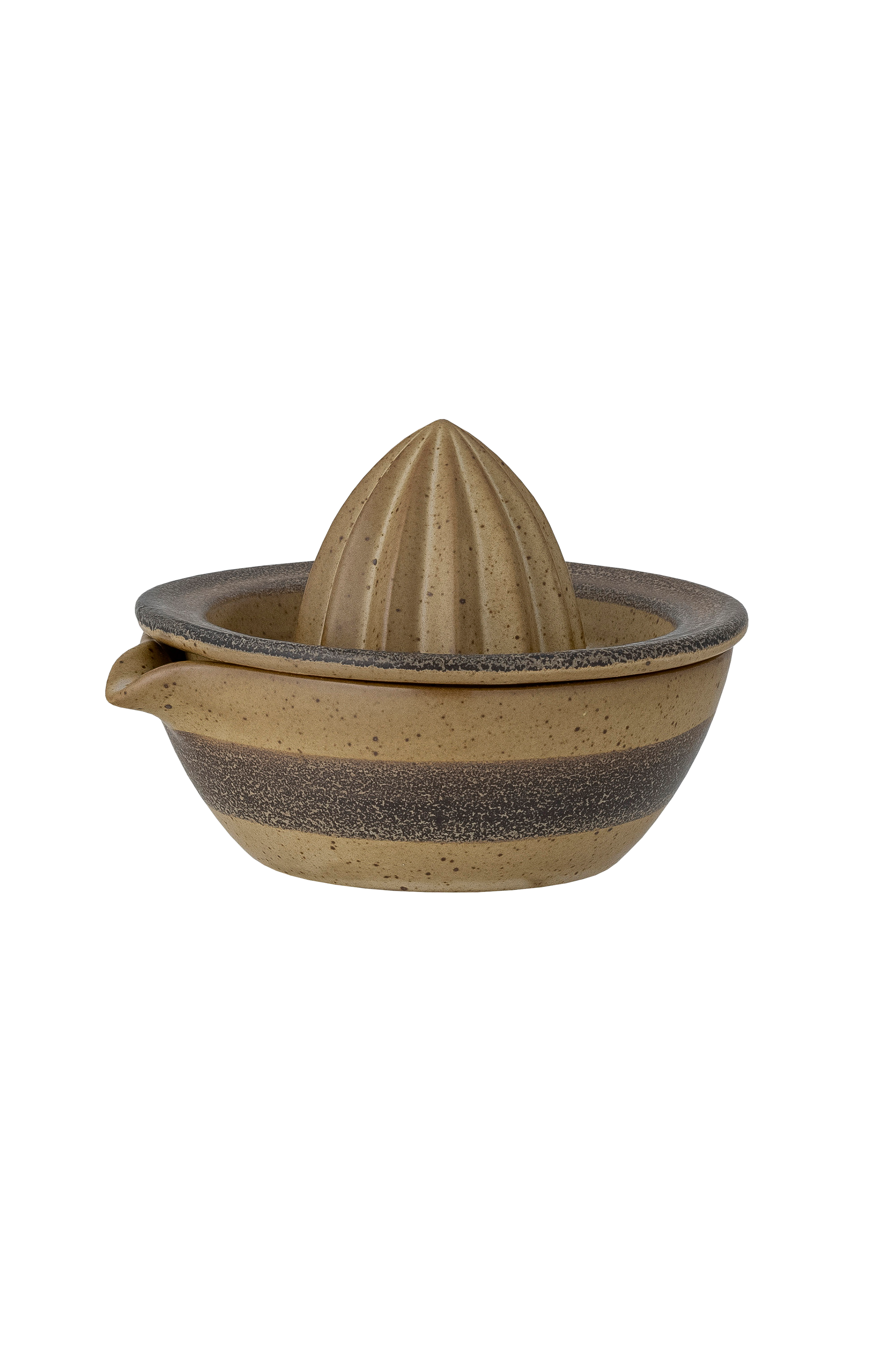 Citruspresseren fra Bloomingville er både praktisk og æstetisk tiltalende. Citruspresseren er fremstillet af naturligt stentøj med en kunstnerisk stribe og designet minder om japansk keramik. Den er unik, håndlavet og glaseret i hånden, hvilket betyder at glaseringen og mønsteret kan variere.