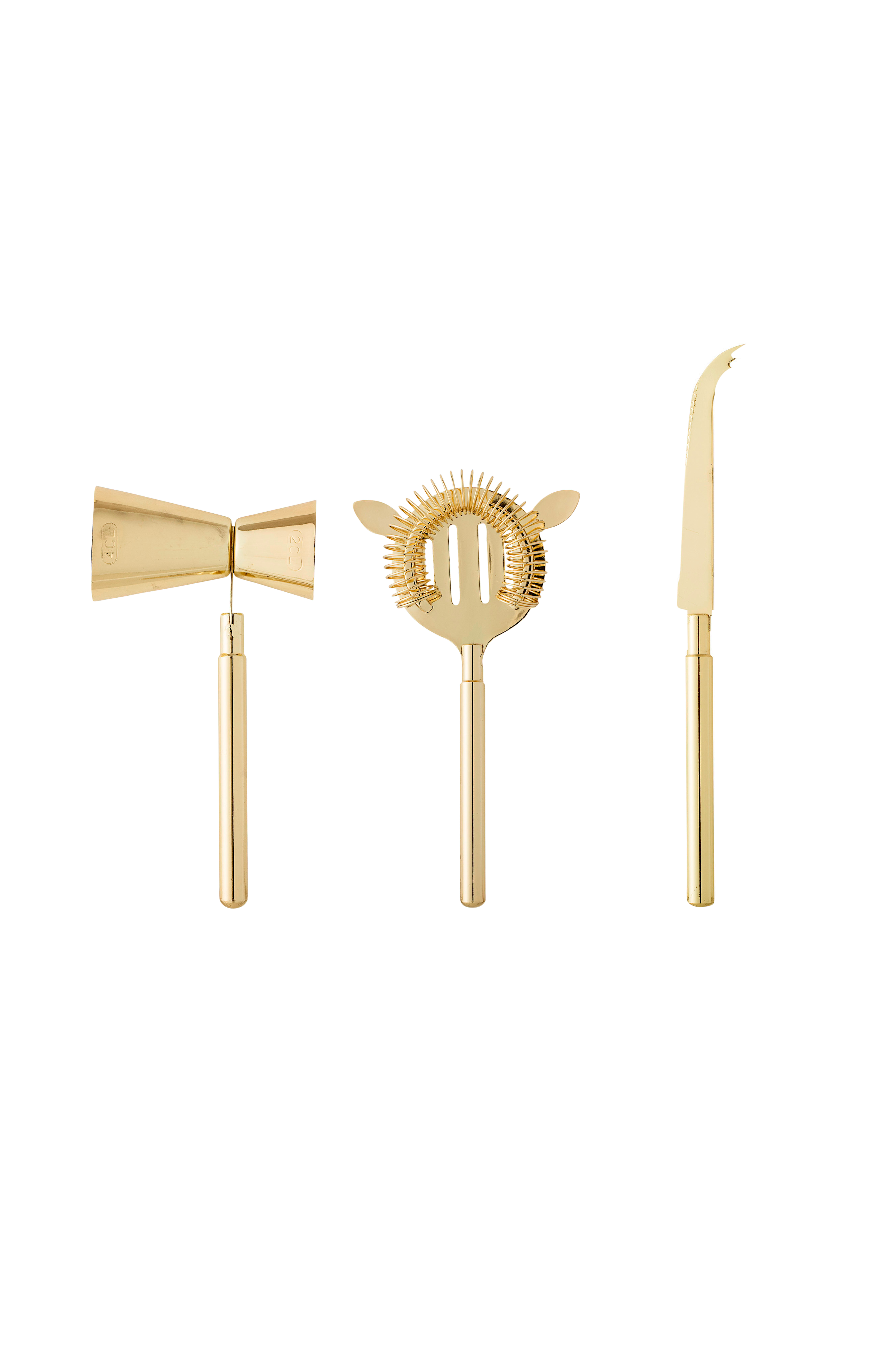 Cocktailbar-sættet fra bloomingville er et uundværligt tilbehør til tilberedning af drinks og cocktails. Det indeholder et målebæger, en si og en kniv, som alle er lavet af rustfrit stål.