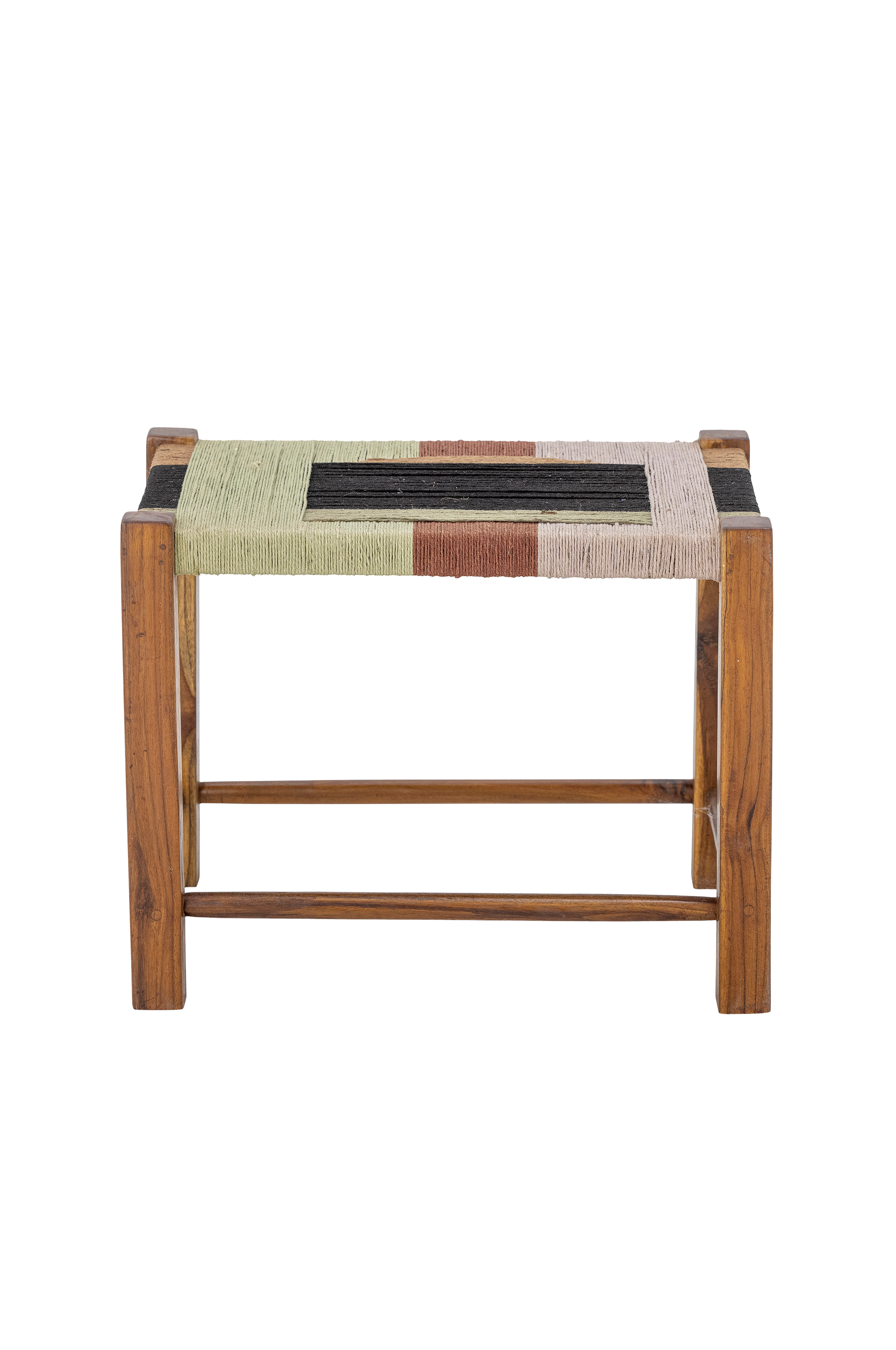 Verde fodskammel fra Bloomingville har et meget specielt design. Fremstillet af mangotræ med farvestrålende væv af jute. Perfekt som dekoration eller til at hvile fødderne på.
