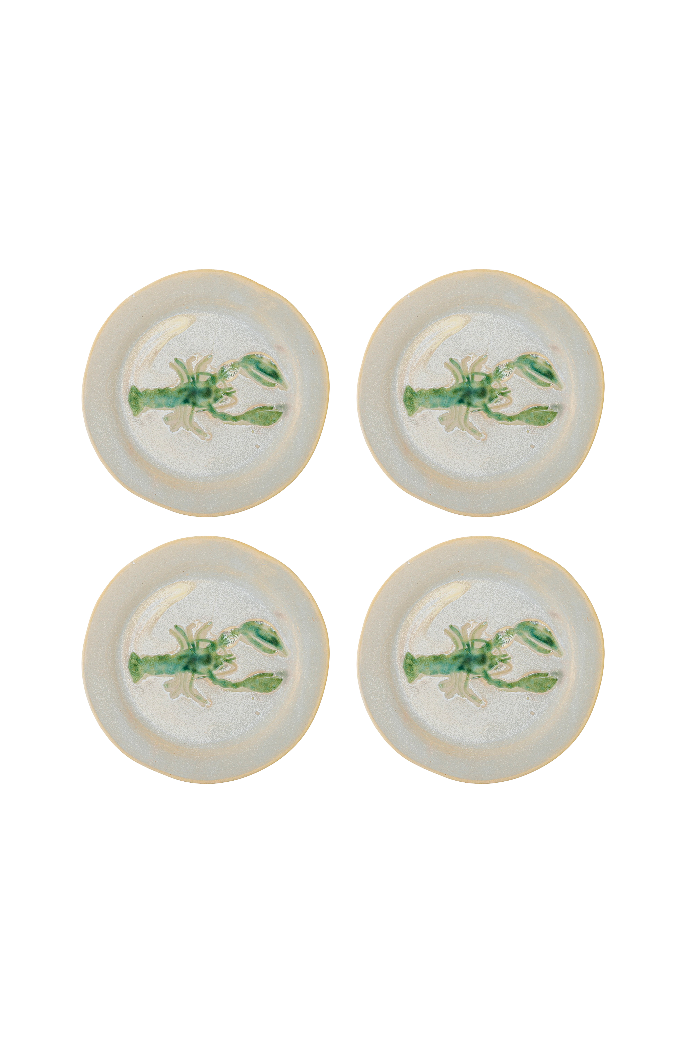 Hadden-tallerkenen fra creative collection er lavet af stentøj og har et malet motiv i midten. Den glaserede illustration står i smuk kontrast til den matte overflade og skaber et charmerende udtryk. Tallerkenen kommer i et sæt på fire, og variationer i glasuren gør hvert stykke unikt.