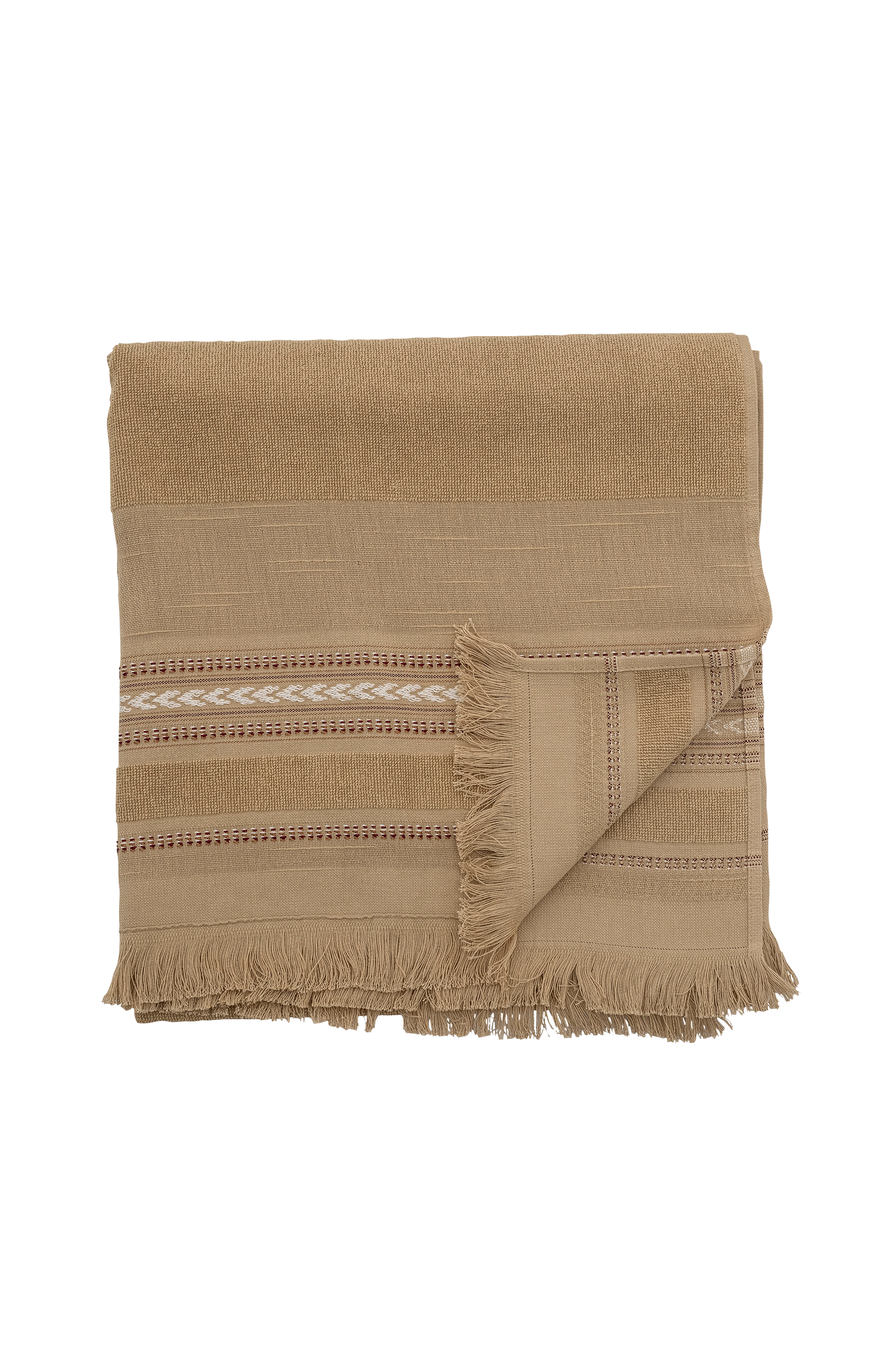 Lovina håndklæde fra Bloomingville er et smukt håndklæde med kontrastfarvede, vævede detaljer og elegante frynser. Håndklædet er fremstillet af 100% bomuld og er en blanding af haman og frotté der føles let. Kombinér med andre størrelser eller farver for at skabe en flot og personlig stil. L100xB50 cm