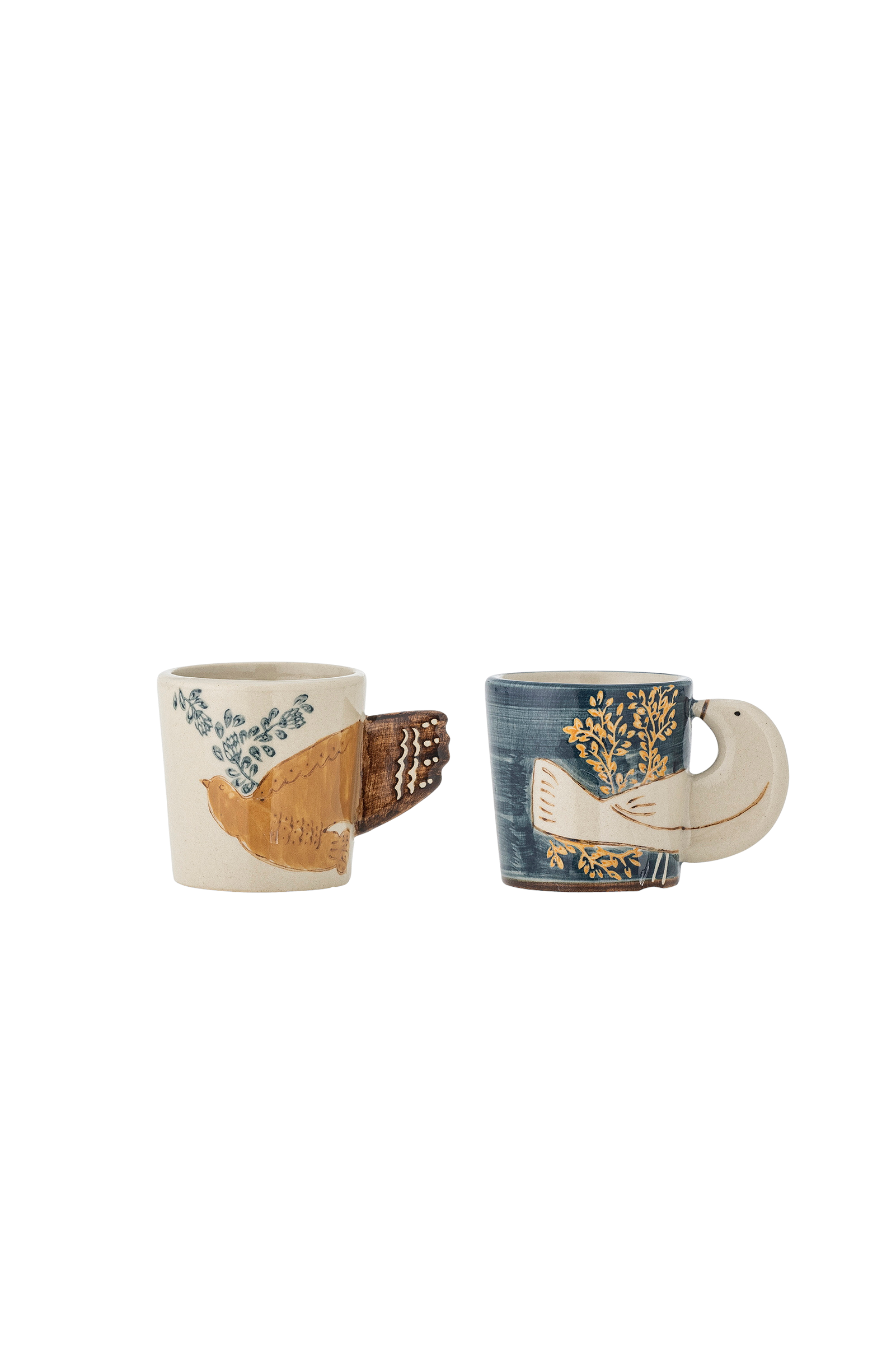 Hezha-espressokoppen fra Bloomingville er et sæt med to charmerende små kopper i stentøj. De har et fint fuglemotiv, hvor fuglens vinger fungerer som hanke. Hver kop er hånddekoreret, hvilket gør dem unikke med små variationer i mønsteret. Perfekt til din morgenespresso eller som en dekorativ tilføjelse til dit hjem.