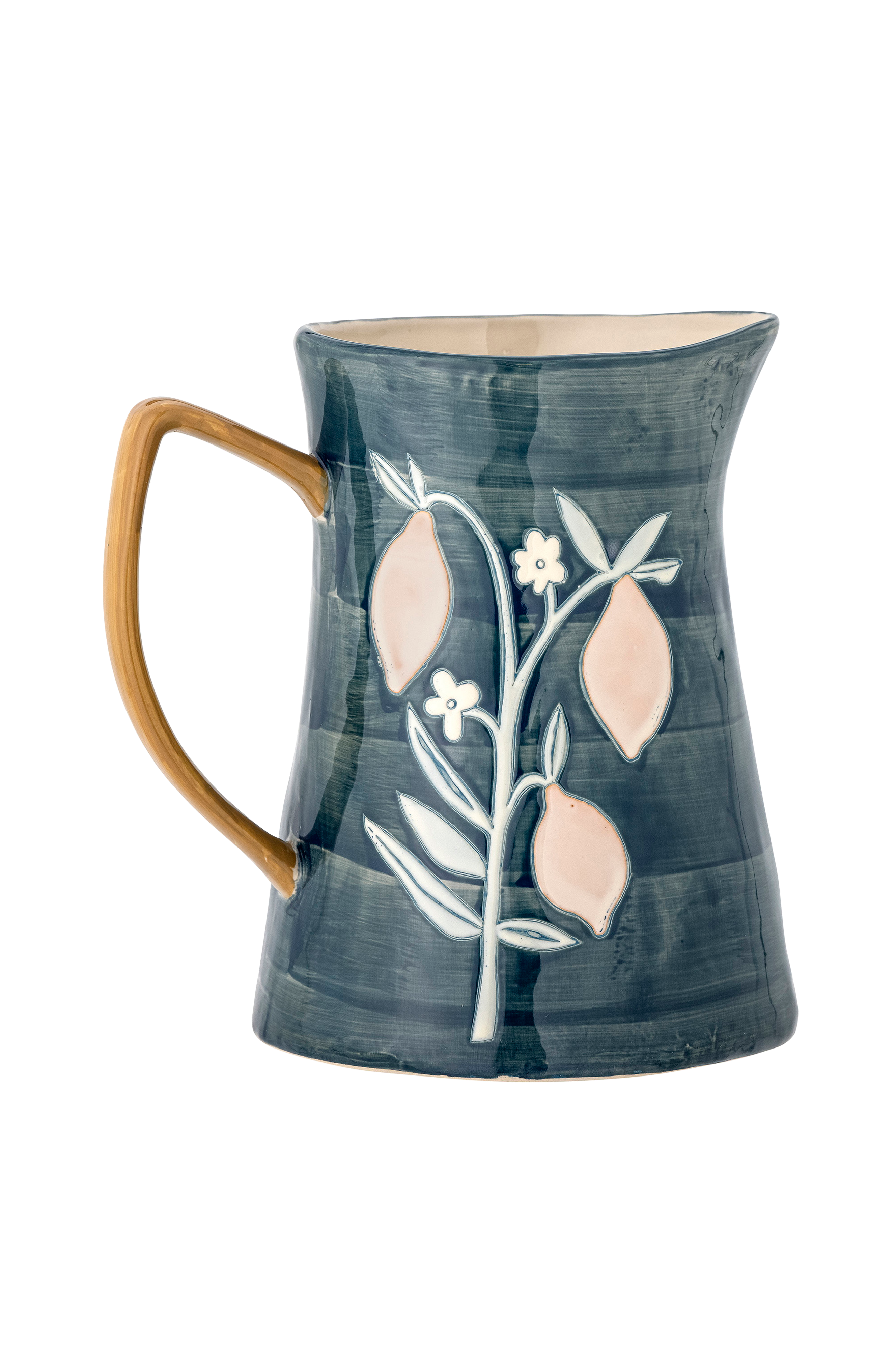 Feriha-kanden fra Creative Collection er lavet af stentøj og dekoreret i hånden. Kanden er malet i en dyb blå farve med et smukt blomstermotiv og pifter op, hvor den står på spisebordet eller køkkenbordet. Kan også bruges som vase. Da de er blevet dekoreret i hånden, er hvert produkt unikt.