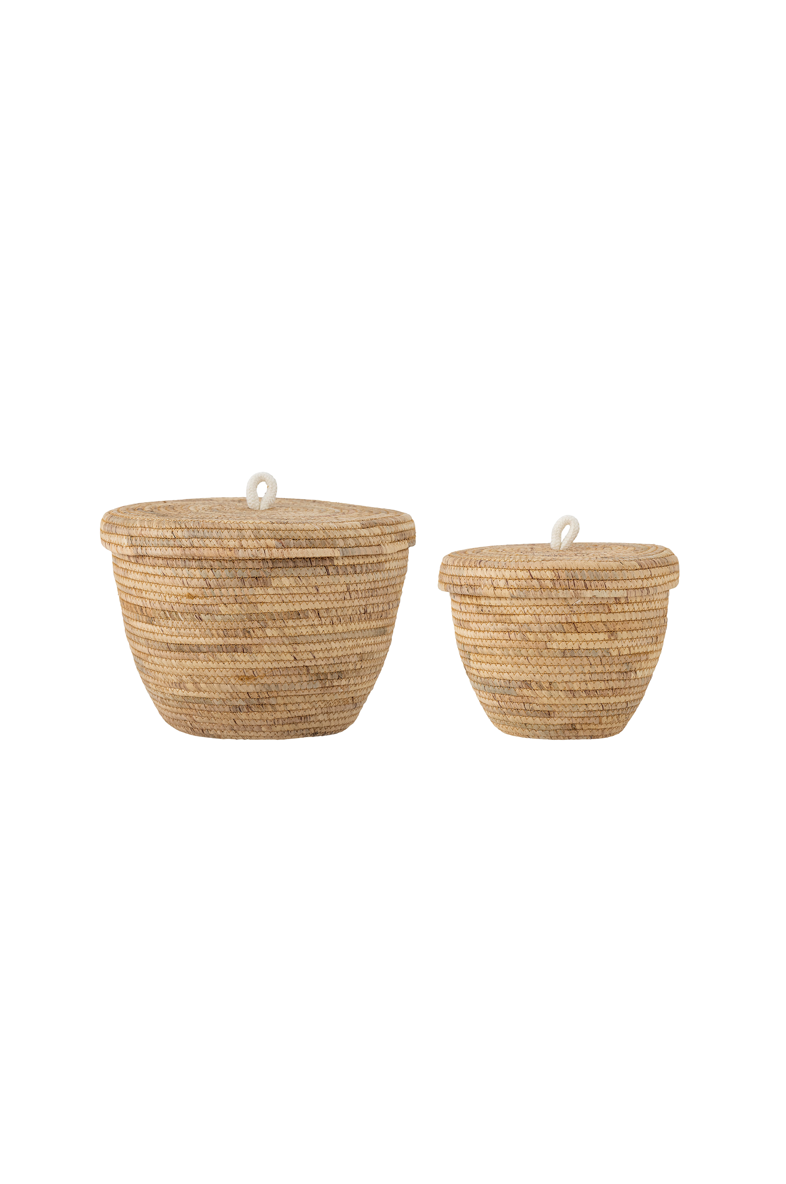 Noi kurve fra Bloomingville er et sæt med to fantastiske, håndlavede kurve i forskellige størrelser af vandhyacint. De forskellige størrelser og låg gør kurvene meget alsidige eftersom de kan indholde mange forskellige ting. Alt fra småting til handsker eller halstørklæder. Det naturlige materiale giver rummet et organisk, afslappet udtryk. Mål: Diameter 30, højde 24 cm. Diameter 36, højde 30 cm.