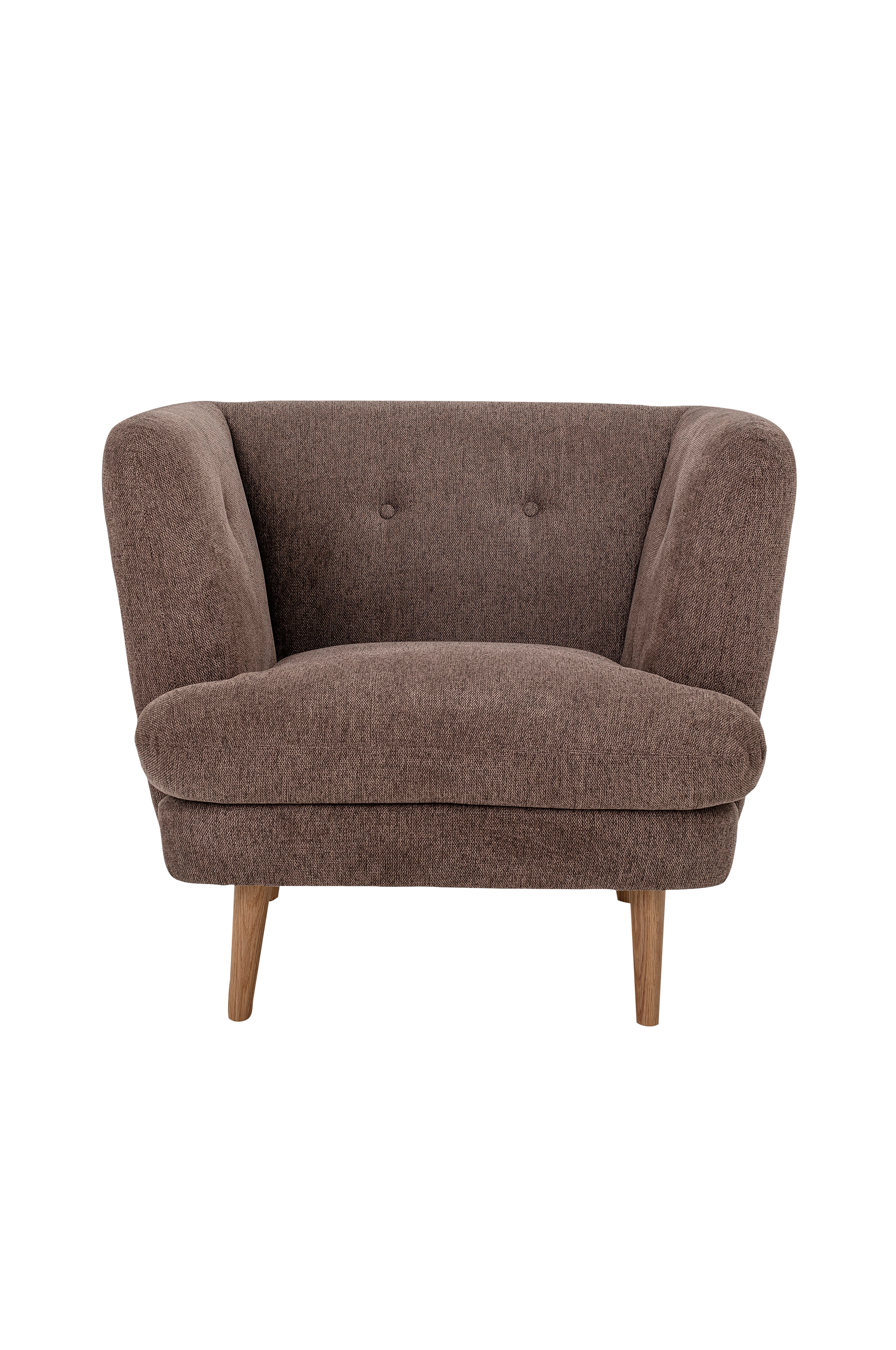 Elliot loungelænestol fra Bloomingville er en vidunderlig lænestol fremstillet af fyrretræ med ben af eg. Stoffet i bløde, brune nuancer, er fremstillet af polyester. Det er en meget behagelig og moderne stol som du ikke vil forlade, når du først har sat dig.