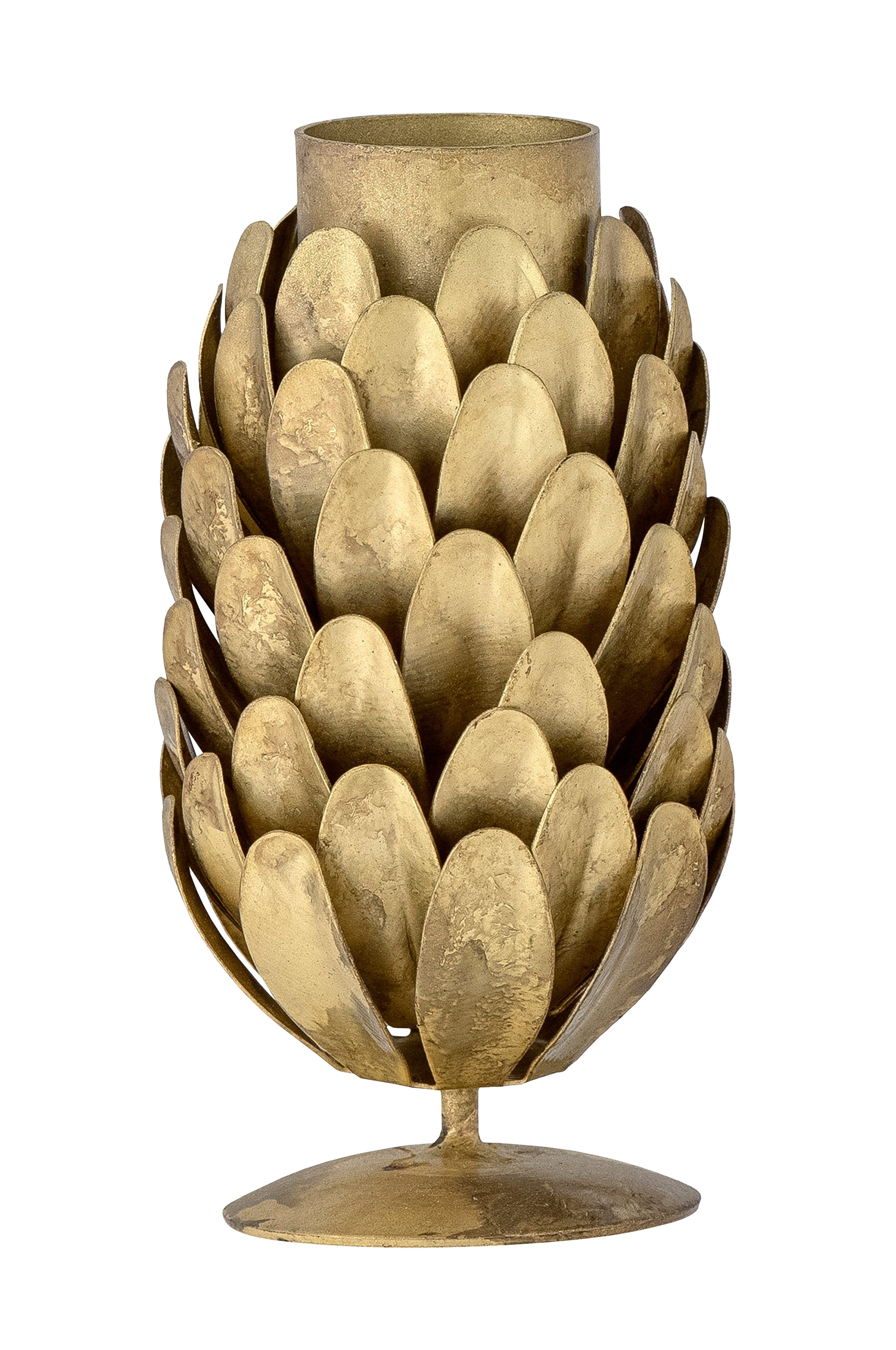 Geraldine lysestage fra Bloomingville er fremstillet af messingfarvet metal i et smukt og rustikt design af en kogle. Kombinér med andre lysestager eller anden dekoration for at få en personlig stil.