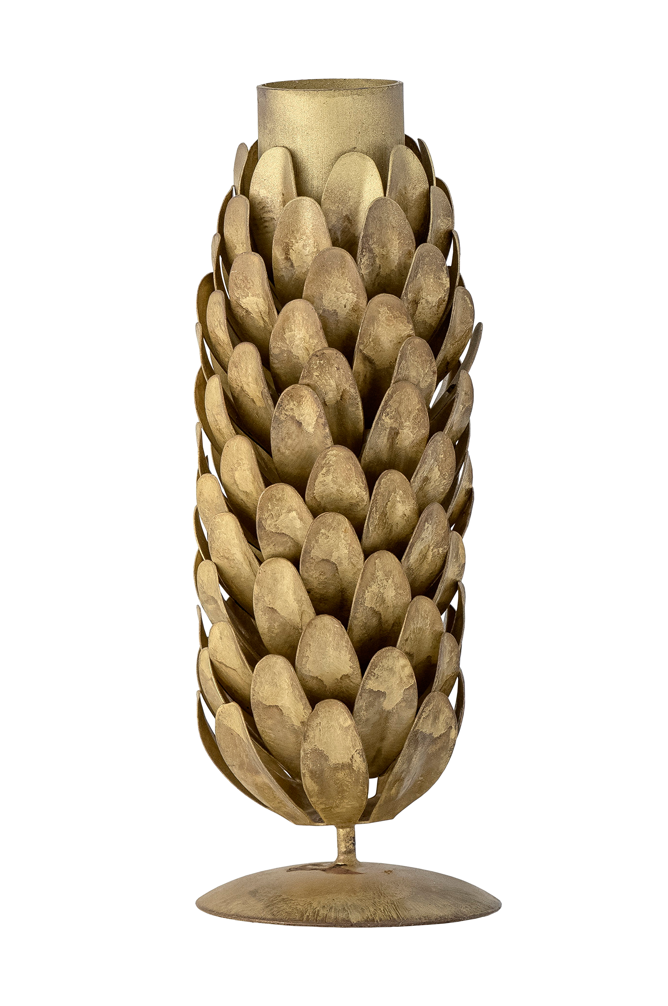 Geraldine lysestage fra Bloomingville er fremstillet af messingfarvet metal i et smukt og rustikt design af en kogle. Pynt sammen med grangrene og små kogler på julebordet, for at få en komplet stil.