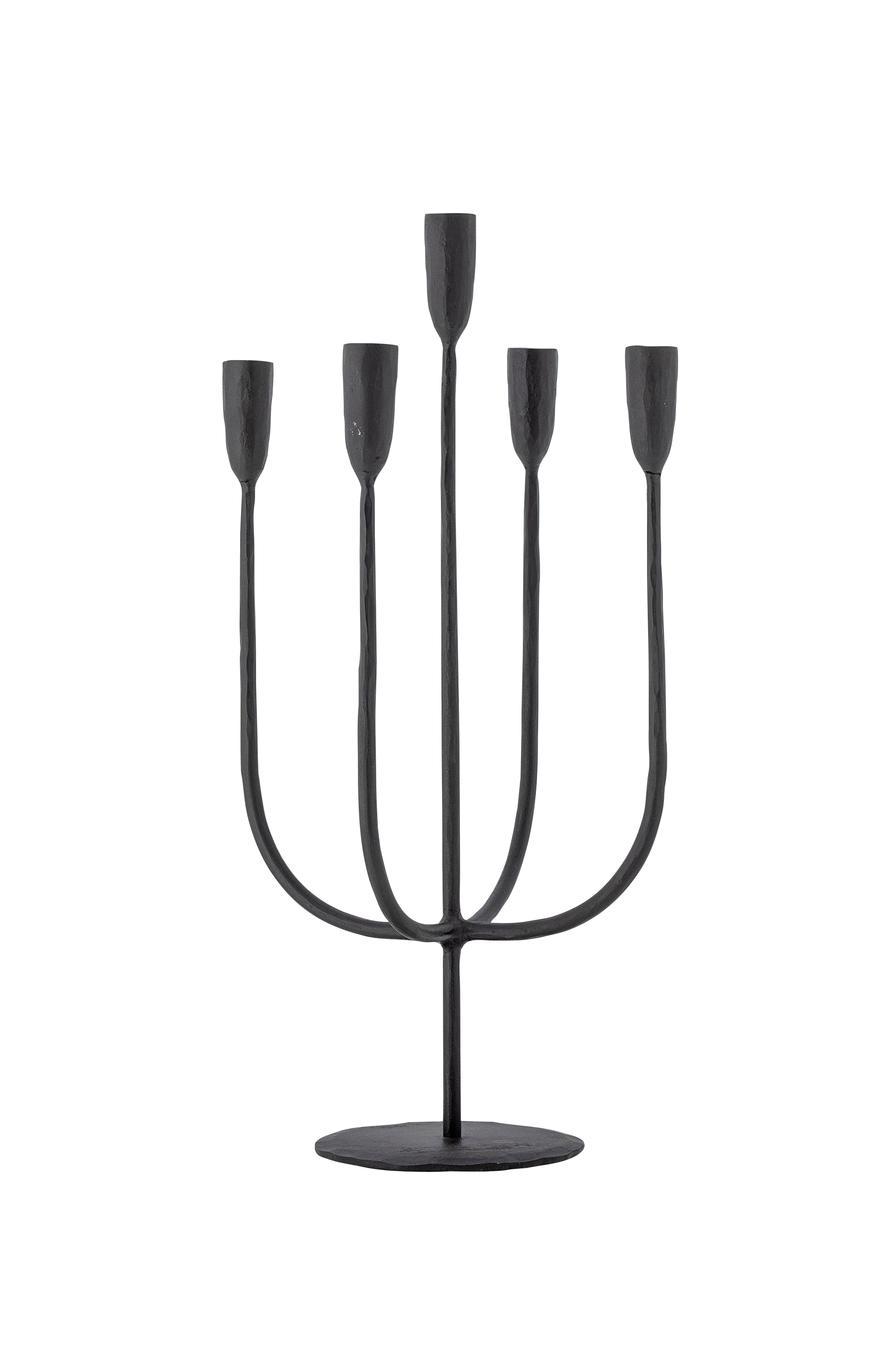 Izma lysestage fra Bloomingville er en stor lysestage lavet af hamret, sort metal. Denne lysestage er perfekt til at skabe en hyggelig og intim atmosfære i hjemmet og kan stilles på gulvet eller i et stort vindue. Det hamrede metal giver et rustikt og moderne touch, der komplementerer en industriel eller minimalistisk indretningsstil. Den store størrelse gør, at den med garanti bliver centrum for opmærksomheden i rummet.