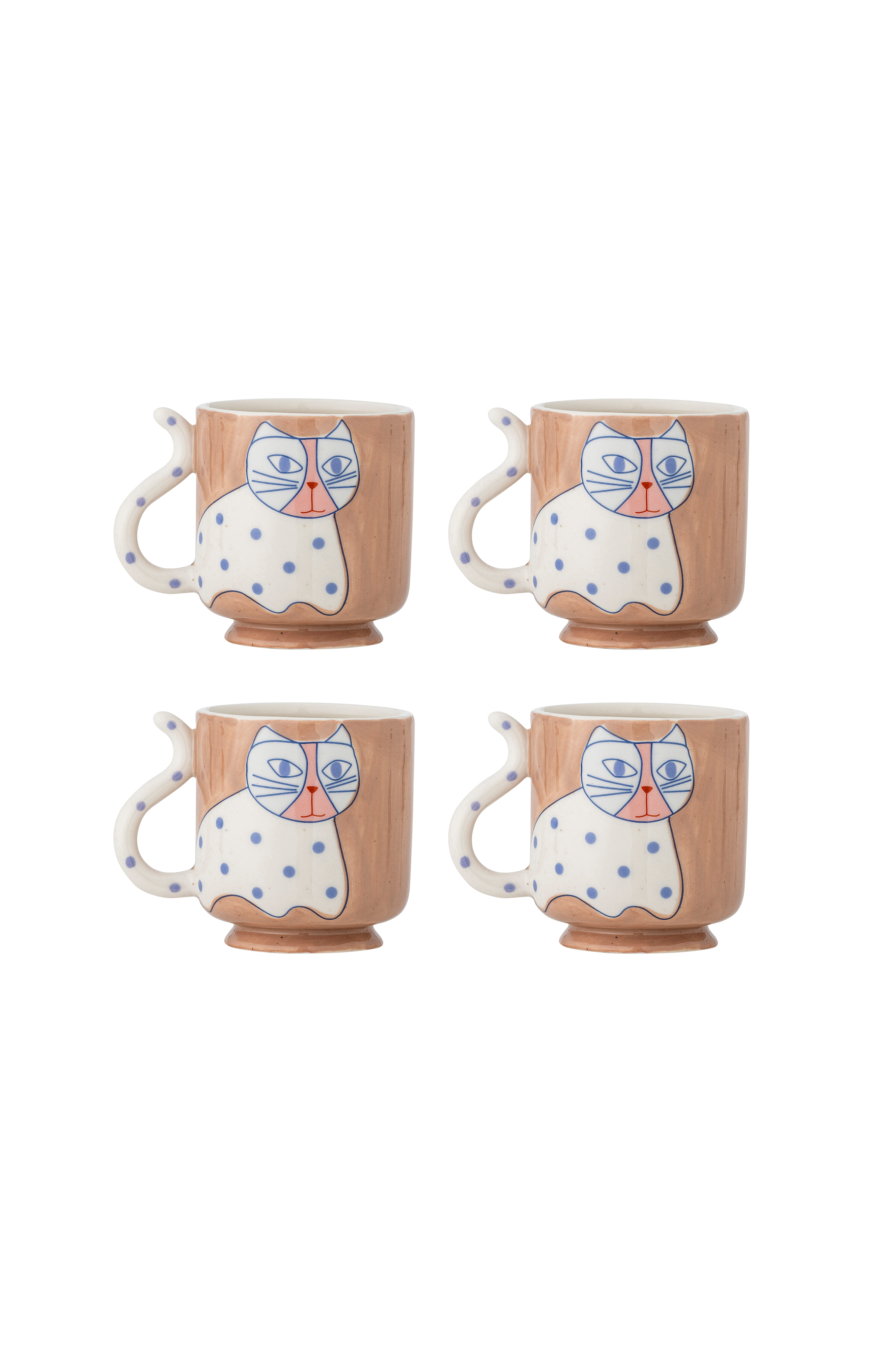 Missy-kruset fra bloomingville kommer i et sæt på fire og er lavet af stentøj. Hvert krus har et finurligt kattemotiv med prikker og viser unikke variationer i overfladen. Perfekt til morgenkaffen eller som et legende indslag i borddækningen.